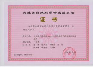 吉林省自然科学学术成果一等奖 2014 “大豆种子特异性soyAP1基因启动子的分离及活性分析