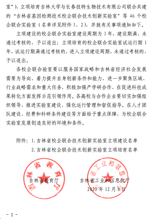 “吉林省节水农业校企联合技术创新实验室”是由吉林省教育厅、吉林省工业和信息化厅于2023年12月批准建设(吉教联〔2023〕94号),与吉林省汇泉农业科技有限公司联合申请创建,隶属于吉林大学植物科学学院。