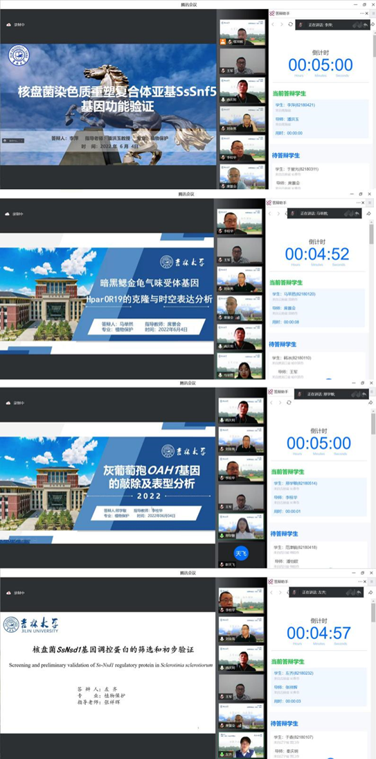 为贯彻落实学校对疫情防控的工作要求,根据教务处关于2022届本科毕业论文答辩的工作安排,植物科学学院积极行动起来,认真落实毕业论文线上答辩工作,在全院师生的大力支持下,利用吉林大学腾讯会议教育版平台提前创建了各专业论文答辩会议,于2022年6月4日圆满完成植物保护专业本科生毕业论文线上答辩工作。本次线上答辩前期准备工作扎实,答辩过程组织规范,师生态度认真,“答”与“辩”均有质量、有内容、有温度。