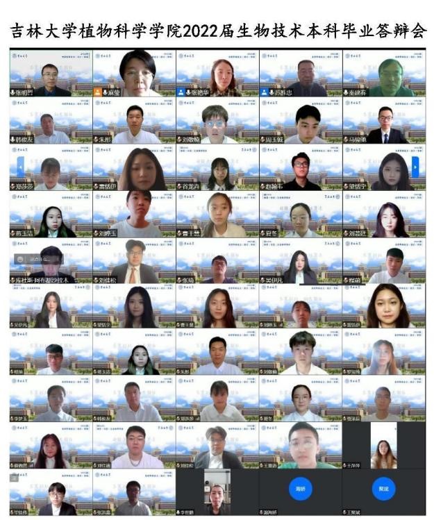 本科毕业论文(设计)是实现高等学校人才培养目标的重要教学环节,为满足疫情防控需要,全面落实吉林大学关于本科毕业生线上答辩的要求,2018级生物技术专业积极开展行动,认真落实毕业论文线上答辩工作。在学院领导及教学办温海娇老师的大力支持和帮助下,生物技术专业全体师生积极配合,于2022年6月8日圆满完成本科生毕业论文(设计)线上答辩工作。