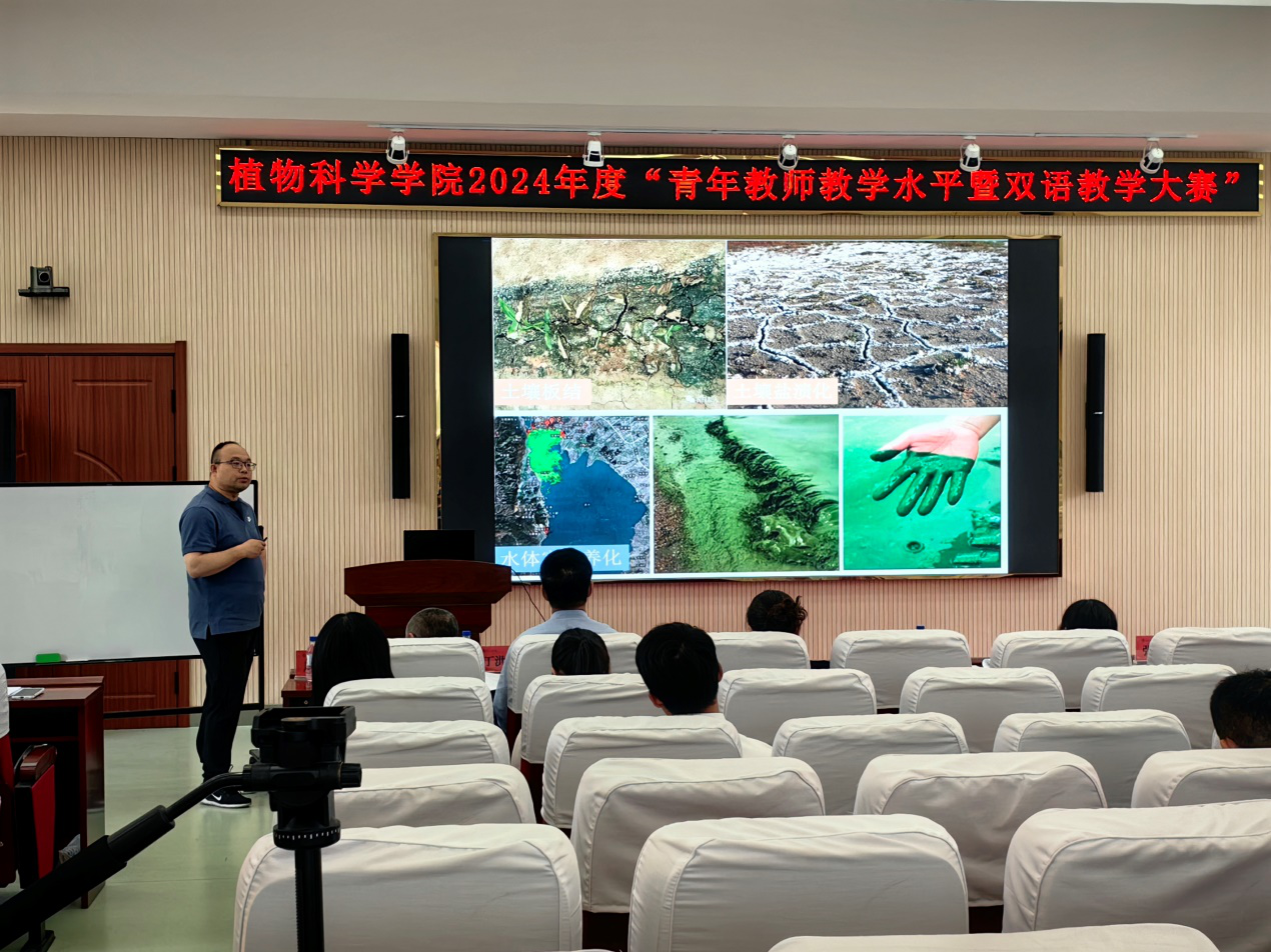 2024年6月11日,植物科学学院成功举办了学院青年教师教学水平大赛暨青年教师双语教学大赛,比赛由学院教学副院长席景会教授主持。本次比赛邀请学校教学督导专家丁洪浩教授、原亚萍教授,校教学委员会副主任委员边鸣镝教授,学校教学水平大赛一等奖获得者张大伟教授和翟璐璐副教授担任评委。