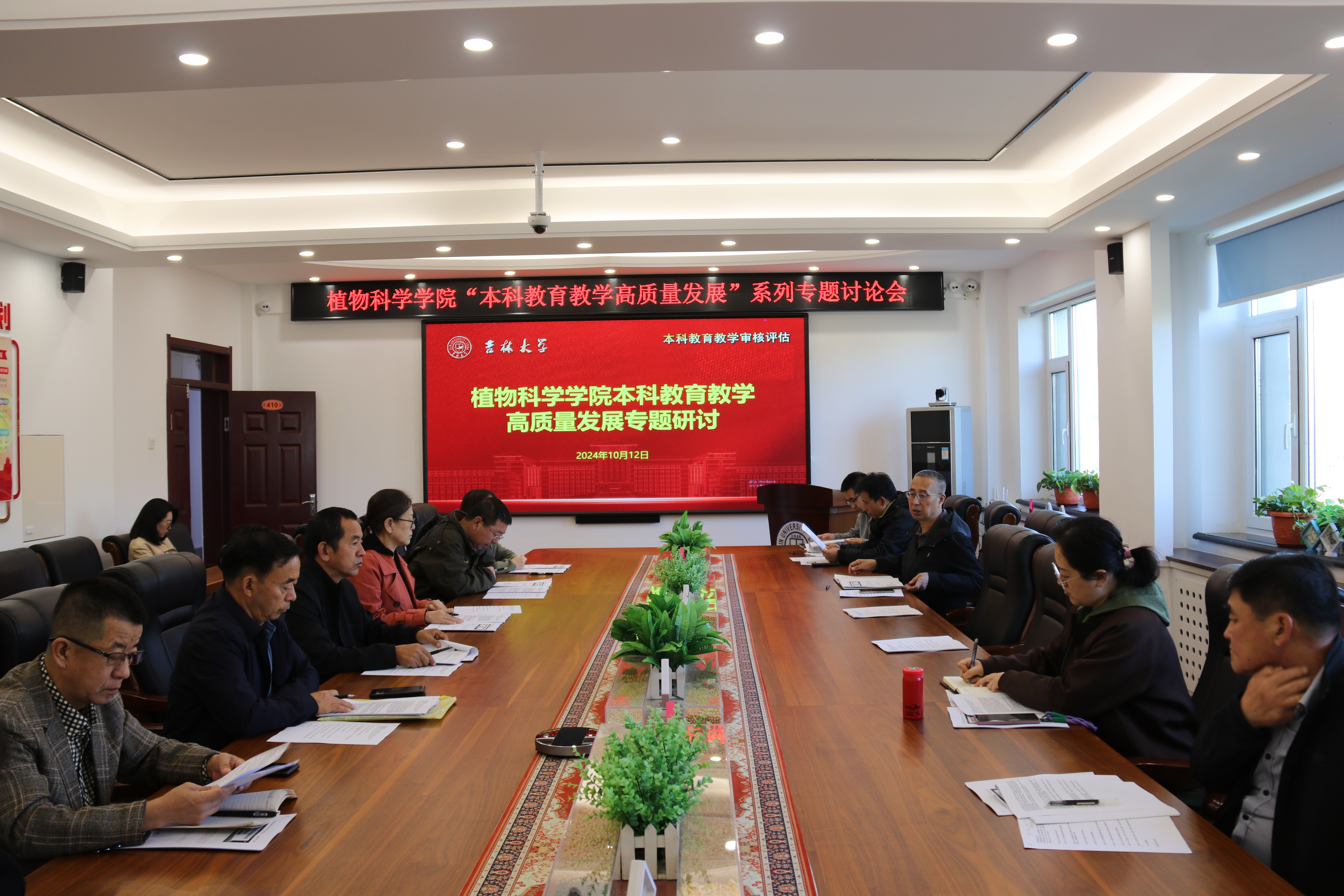 以坚持立德树人为根本任务,全院凝聚思想共识,深入理解办学定位与教育理念,强化人才培养中心地位,坚持问题导向,全面梳理分析当前存在的关键问题和重难点问题,完善人才培养长效机制,全面提升本科人才自主培养质量和培养能力。植物科学学院于2024年10月10日和12日上午,在植科楼410会议室,分别召开了“本科教育教学高质量发展”系列专题讨论会,学院领导、教学委员会主任和各系、室、中心、基地负责人参加了会议。会议由席景会副院长主持。