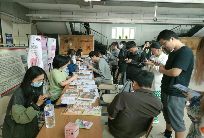 在心中汇聚阳光,在脚下积蓄力量。为了让同学们放松身心,展现自我,活动过程中安排了趣味心理游戏体验活动。“心口不一”活动中,在规定时间内,参与者需要按照从左到右的顺序,依次念出题卡上汉字字体的颜色,全部正确为挑战成功。有错误即为失败。通过这个游戏,参与者可以在游戏中体验优势反应对非优势反应的干扰;“镜映绘心”活动中需要将纸张平铺桌面,镜子与纸张垂直。眼睛全程观察镜子中的图像,不可以直视五角星纸,在3分钟内两个同心五角星之间描画出新的五角星图像。此游戏考验参与者对惯常思维的摆脱,碰壁并不可怕,可贵的在一次次碰壁后坚持下去的勇气;“气质探秘”活动则是为心灵打开一扇窗,给自己多一些阳光。通过公众号“JLU吉大心声”的预约咨询进行MBTI人格量表或爱情态度量表心理测评。测验完毕后,同学们根据测试结果,将自己喜欢的贴纸贴在展板的对应区域。该环节用以衡量同学们在获取信息、做出决策、对待生活等方面的心理活动规律和性格类型以及他们爱情态度的基本维度。