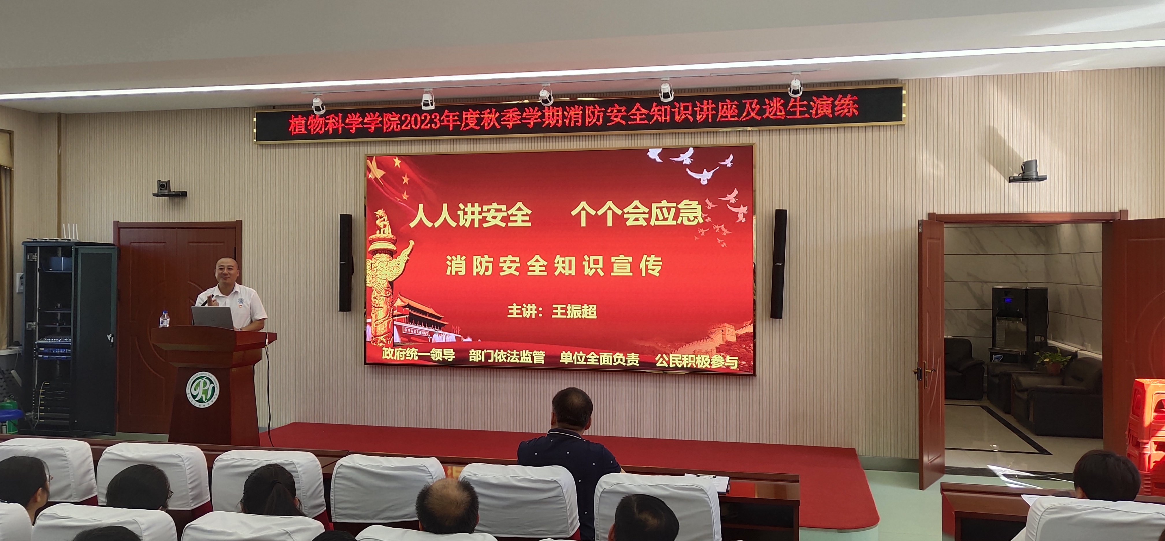 按照学院的工作计划安排,学院全体教职工和研究生于9月15日下午在学院报告厅和学院楼外广场进行了2023年度秋季学期的消防安全知识讲座和逃生演练,整个活动由长春市为民安消防教育中心王振超教官主讲,西区保卫办叶天春和范立鑫两位老师全程参加工作指导。
