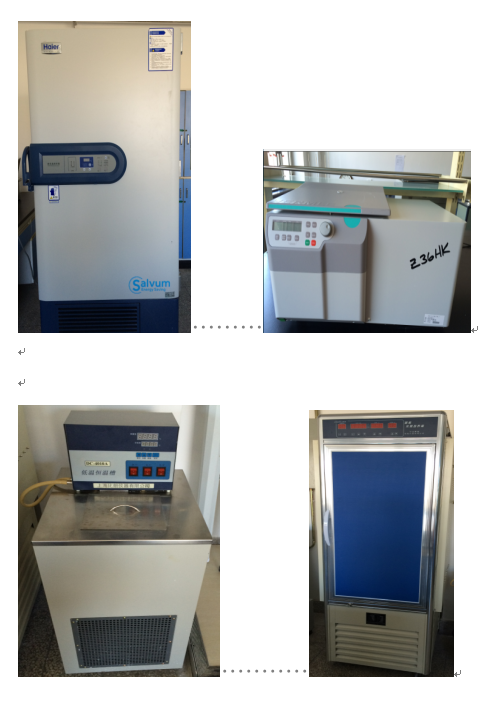 本实验室主要实验设备有台式高速冷冻离心机、超高速离心机、超低温冰箱、光照培养箱、低温恒温槽、紫外可见分光光度计、立式电热压力蒸汽灭菌器、电泳仪等以及其他基本仪器(电子天平、PH计、电泳槽、糖度计等)。可以满足园艺本科生的课程实验、大学生创新、毕业论文等研究的需要。