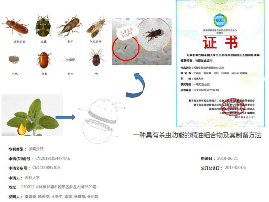 本成果为一种由不同来源的植物精油混合制剂制作方法,缓释装置,其特征在于该制剂由以下的原料构成:大丽菊精油,青蒿精油,花椒精油,紫苏精油,辣根精油,杉树精油等。该植物源熏蒸剂可以有效防治粮库,粮仓及家庭厨柜里粮食中的各种储粮害虫,同时对很多引起粮食发霉变质的真菌具有显著抑制作用。已经设计出用于粮仓的多孔球缓释装置, 让球内吸附在固定相上的精油气体缓慢释放到粮食中, 该生物防治制味道清新、安全,不会污染粮食,达到长期的防效,不同储粮害虫数量降低在80%以上,发霉粮食降低在65%以上。已经申报国家发明专利。