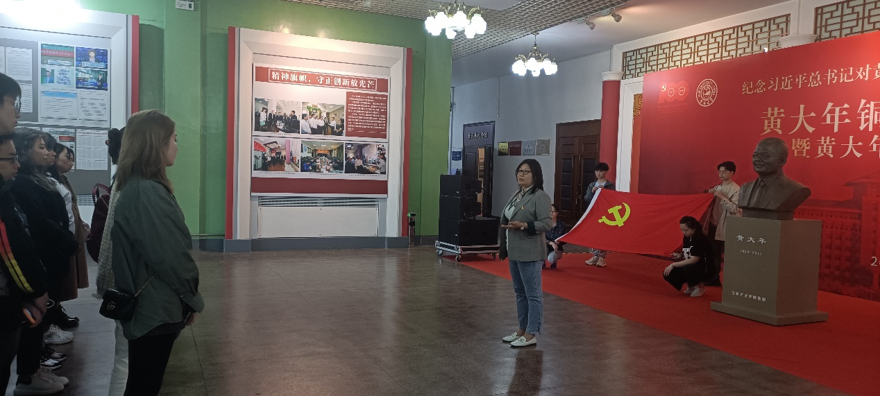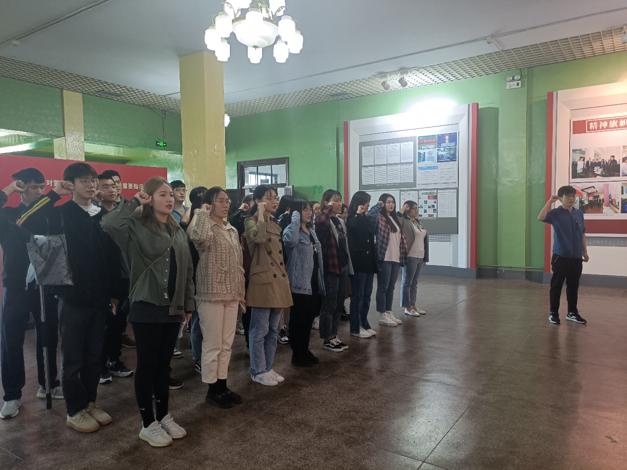 参观结束后,党员们面对党旗宣誓,重温入党誓词,铮铮誓言,铿锵有力,彰显了植科学子牢记习近平总书记的殷殷嘱托,以实际行动恪守对党的承诺的信心和决心。最后,姚彬老师勉励大家要学习黄大年老师的先进事迹,并与党史学习教育想结合,鼓励大家要做一个追求梦想、刻苦钻研、心系祖国、甘于奉献的人,她希望大家能以实际行动传承黄大年精神,把党员先进性最大地体现在学习、工作上,从身边的小事,牢牢把握“党员就是一面旗帜”的深刻含义,凝心聚力、奋勇争先,为中华民族伟大复兴贡献自己的力量。