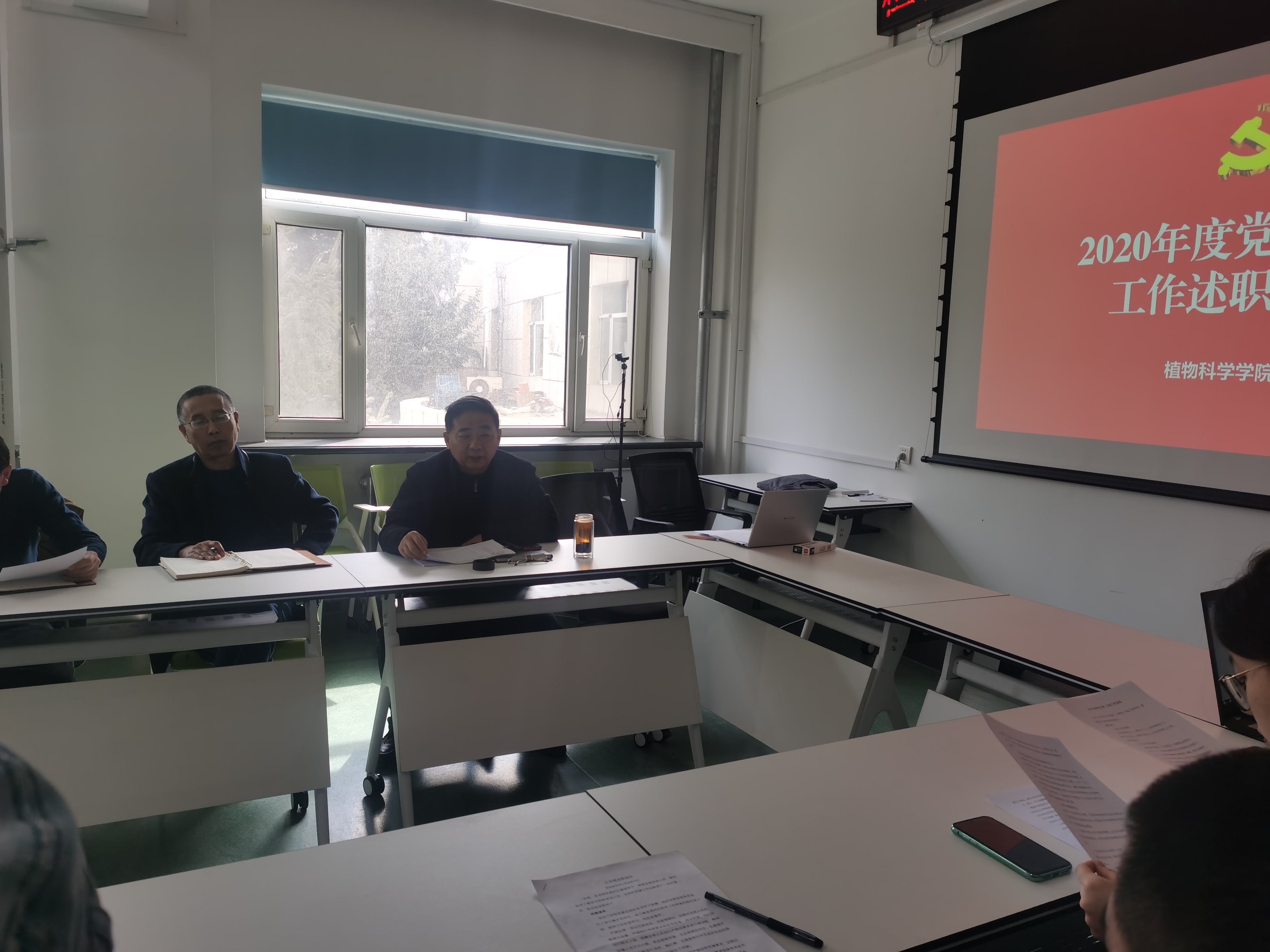 3月19日,植物科学学院党委组织2020年度党支部书记抓党建工作述职评议会,会议在学院新农科与前沿交叉科学研究中心会议室举行,院党政领导班子成员、党支部书记、行政办公室主任及党员代表参加了述职评议会,党委书记于生宗主持会议。