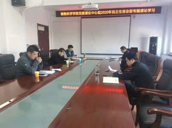 1月7日上午,植物科学学院组织开展党委理论中心组2020年民主生活会会前专题理论学习,学院党委书记于生宗同志主持学习,按照学校党委《关于开好2020年度处级党员领导干部民主生活会的通知》要求,开展集中学习研讨,为开好学院领导班子民主生活会打牢思想理论基础。