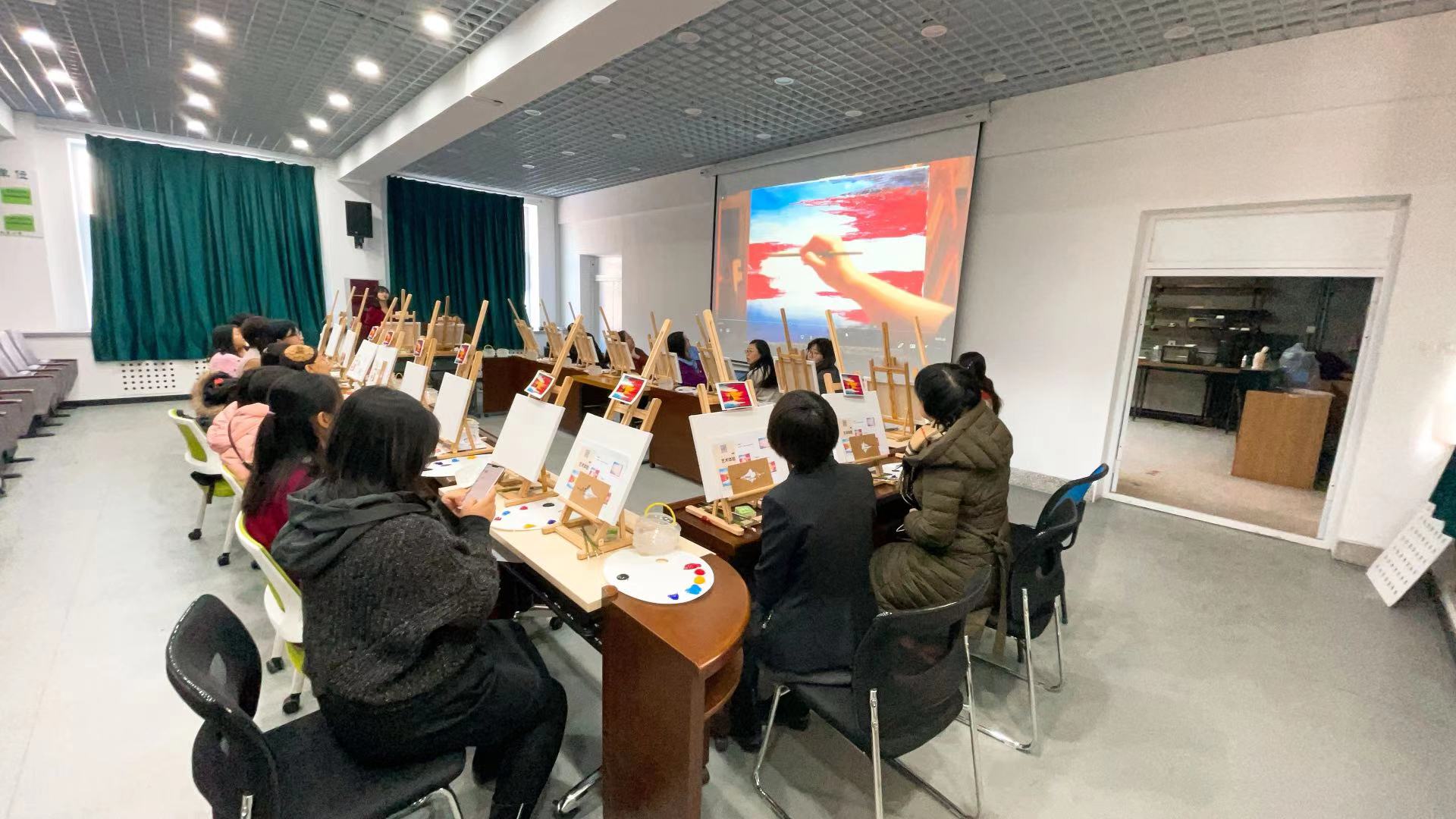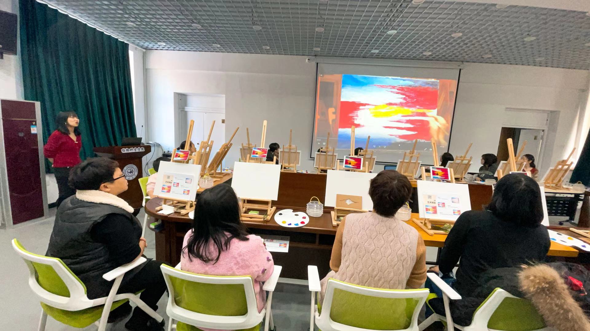 活动第二项,邀请长春首家成人画室创办人张乔老师到学院授课,为大家讲授油画作画方法、基本工具使用、作品色彩的填充等基本技法,并指导每名老师完成一幅油画。张乔老师还与学院教师共同完成了一幅《长城》的油画作品。抛开外界的吵闹、放下繁重的科研工作,随着画笔与颜料,学院女教师从零开始,一支笔,一屡画布,度过了一段美丽的时光。