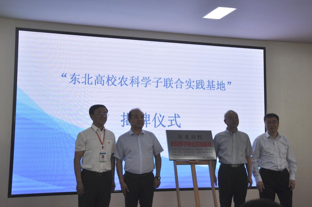 开幕仪式上农科学子联合实践行动东北片区理事长单位——东北农业大学副校长邹德堂教授致辞肯定了植物科学学院在赛事筹备工程中所做的努力,并期待农科学子在此平台下发挥创造力,展现青年风采;刘鹤处长向与会来宾分享吉林大学推进“双创”工作的做法、成绩、经验与要求;杨振明学部长介绍了植物科学学院近年取得的突破性成绩;杨柏明董事长介绍长春国信现代农业科技发展股份有限公司概况。开幕仪式上邹德堂副校长,杨振明学部长,刘鹤处长及杨柏明董事长共同为“东北高校农科学子联合实践基地”揭牌。
