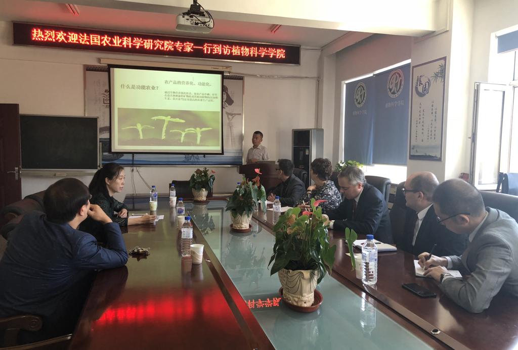 会上,曹宁副院长代表学院领导对Sylvie RECOUS女士一行表示热烈欢迎,介绍了植物科学学院学科、科研、师资及研究生培养等情况。随后,李斌老师介绍学院围绕功能农业开展的工作及双方可共同研究的科研课题。