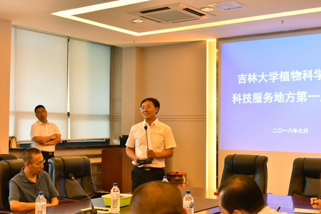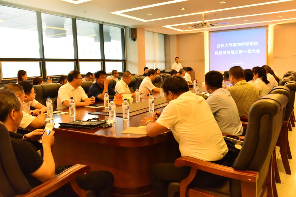 为落实党的十九大精神,贯彻吉林大学科技服务地方振兴吉林新一轮经济发展战略,凝聚校友力量,挖掘植物科学学院学科资源,服务地方政府及企业农业发展,结合吉林大学校友回吉创业暨吉林大学第二届科技服务合作发展大会的日程安排,2018年7月26日上午,植物科学学院隆重举办首届科技服务地方大会。