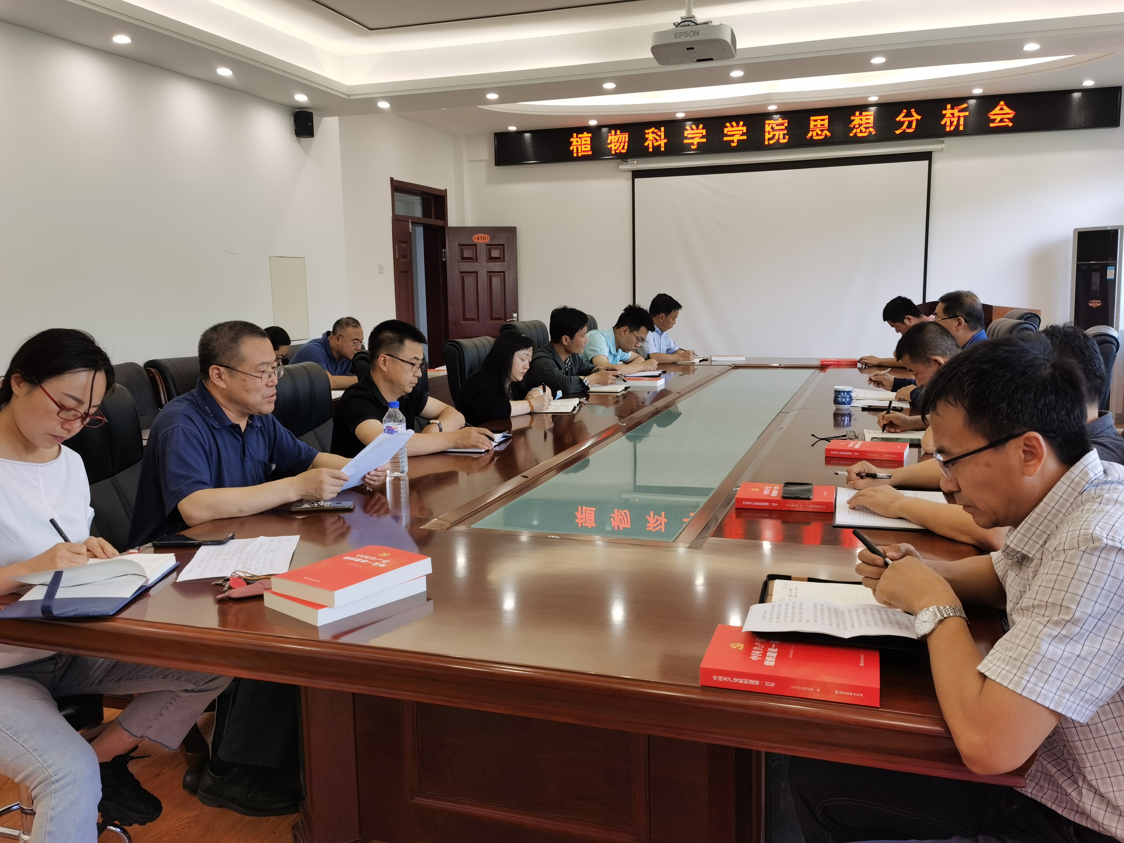 9月1日下午,植物科学学院在学院四楼会议室组织召开新学期思想分析会,学院党委委员、党支部书记、各行政办公室主任参加,会议由党委书记于生宗主持。