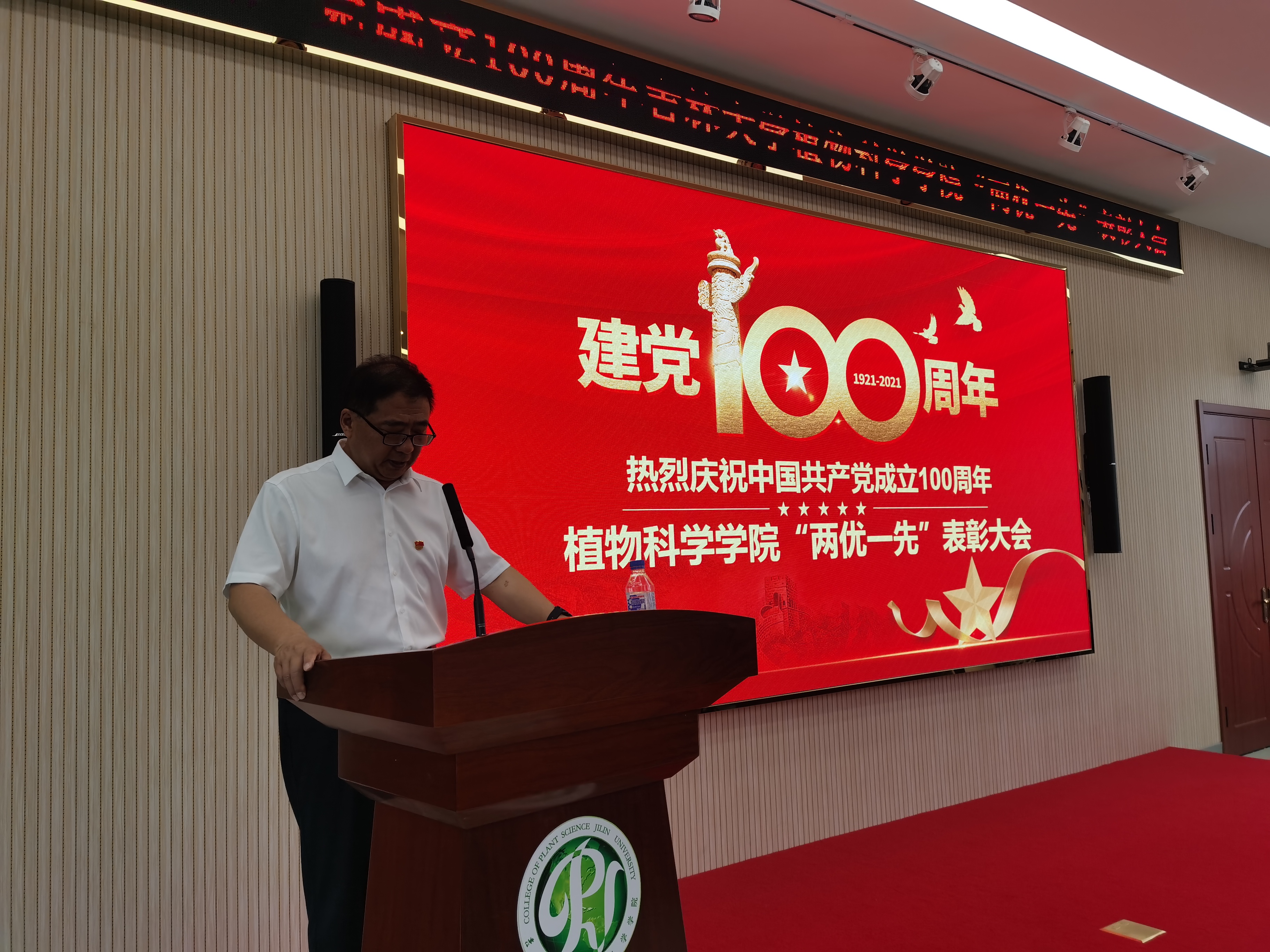 一百年栉风沐雨,一百年岁月峥嵘,一百年乾坤扭转,一百年光辉历程。6月30日下午,植物科学学院党委在学院二楼报告厅隆重举行了庆祝中国共产党成立100周年“两优一先”表彰大会。农学部学部长杨振明同志、学院党建工作联络员林森同志,学院党委委员、纪委委员、全体教工党员和学生党员代表参加表彰大会,会议由学院党委书记于生宗同志主持。