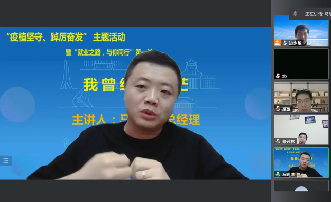 马明洋校友与我们分享了他艰难的成长历程和创业之路。从出生地的贫困、父母的严厉,到大学新生活的迷茫,再到就业初期的怀才不遇,每个阶段都会有人生的迷茫与无措,但他都能在恰当的时间做出较优的抉择,不断学习,坚持尝试,勇于突破,一步步踏实坚定地走向人生的辉煌。马明洋校友的人生经历告诉我们:身体是革命的本钱,即使有再繁忙的学习和工作,都要坚持锻炼,保持强健的体魄;珍视大学的宝贵时光,积极参与社会活动。任何的经历都是有意义的,掌握的知识和技能终将会在未来给予我们帮助;力所能及地帮助他人,赠人玫瑰,手留余香。最后,马明洋校友建议,无论在什么时候都要对生活充满希望,不要躺平,坚持进步。相信这也是他在多年工作和生活中积累的宝贵经验。