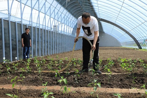 在占林农业基地的零耗能智能温室大棚内,大家将植物学院郭庆勋老师繁育的9种辣椒秧苗移栽到田间,占林农业董事长“吉林大学大学生人生导师”杨占林先生亲自示范备垄、施肥、移栽、浇水等操作细节,支部党员一齐动手,分工协作,秧苗横成排、纵成列,整齐的移栽到田间。随后大家又进行了室外除草和果蔬采收活动,近30度的高温使大家挥汗如雨,但全体党员热情高涨,在农事劳动中度过了一个充实的上午。支部联系领导韩俊友副院长全程参与了劳动。
