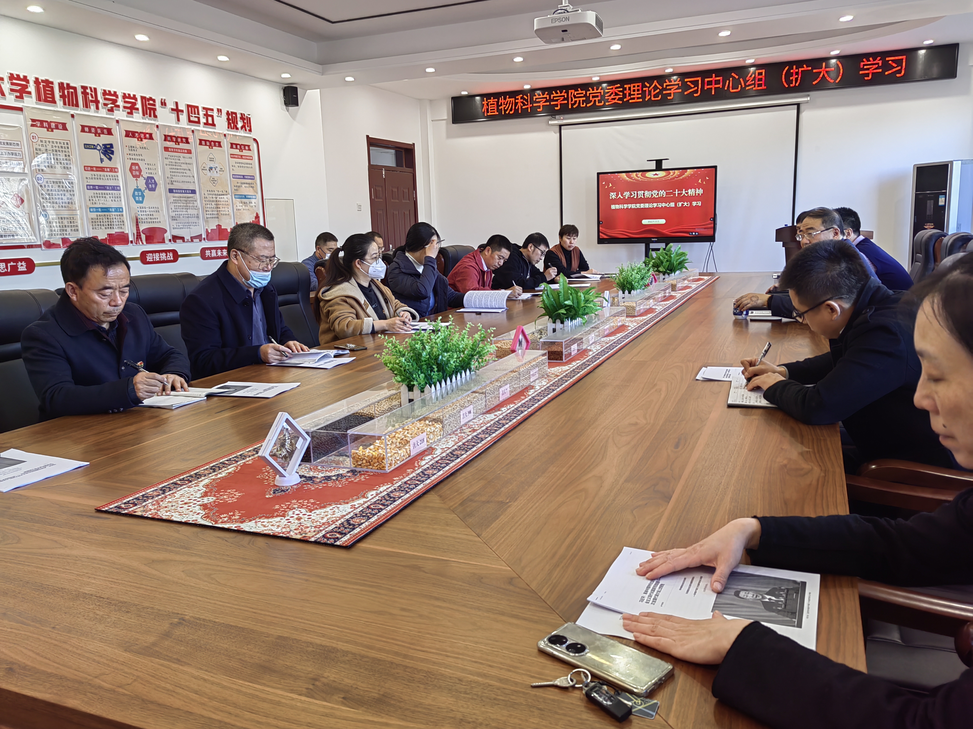 11月8日,植物科学学院党委召开理论学习中心组(扩大)会议,学习宣传贯彻党的二十大精神。学院党委委员、党支部书记参加学习。会议由党委书记于生宗主持。