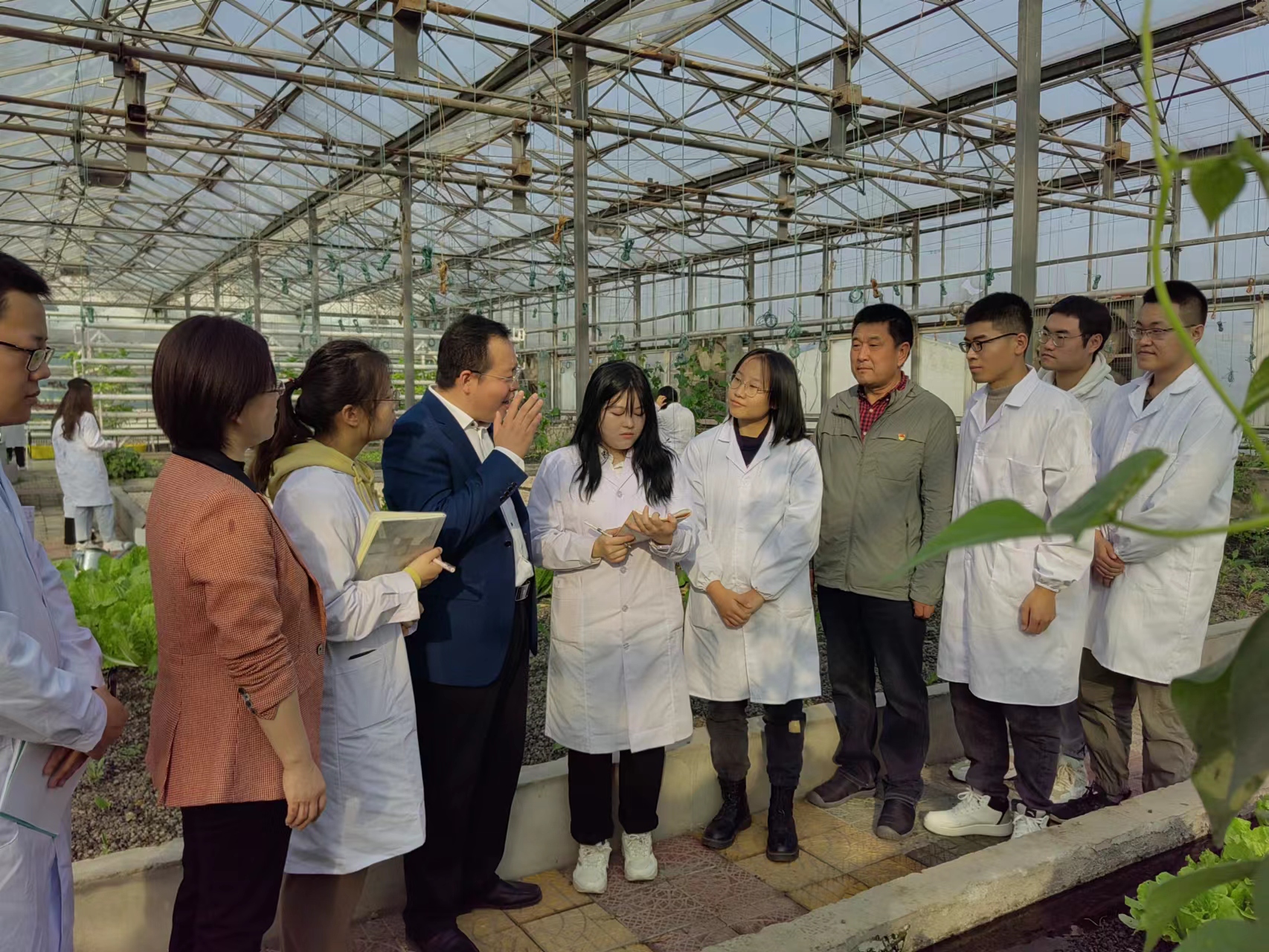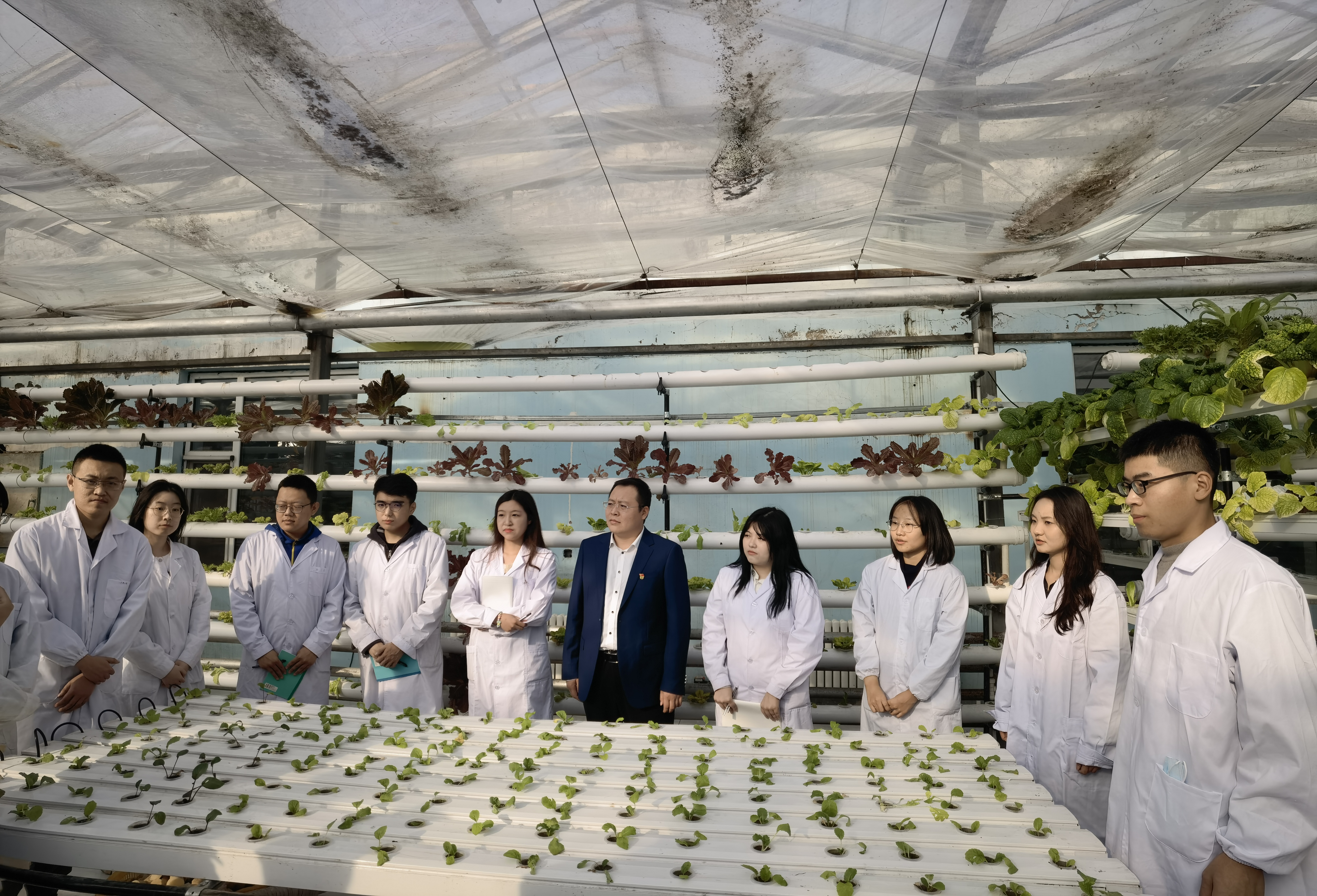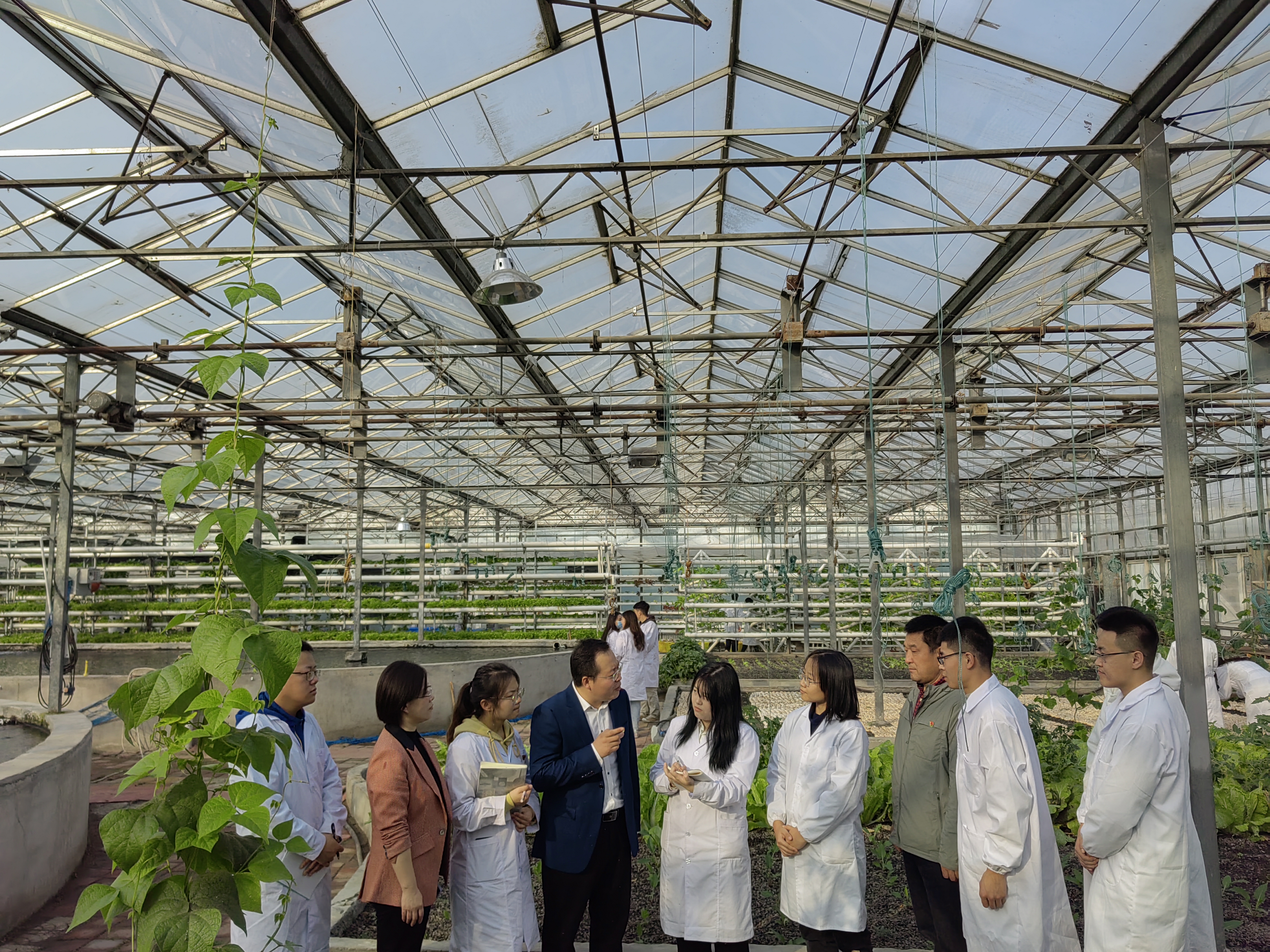 首先,孙贺老师走进学院鱼菜共生新农科基地,与在基地实习的师生一起交流学习党的二十大精神的体会,说感悟、谈收获,信心满怀、气氛热烈。孙贺老师回答了同学们关于“怎样理解二十大报告将教育、科技、人才合并成为一章,放在第五部分“实施科教兴国战略,强化现代化建设人才支撑"进行统筹部署,集中表达?”等问题,同学们纷纷表示,党的二十大报告使他们振奋不已,作为实现中华民族伟大复兴的生力军,要牢记嘱托、砥砺奋进、努力学习,为祖国的建设添砖加瓦。
