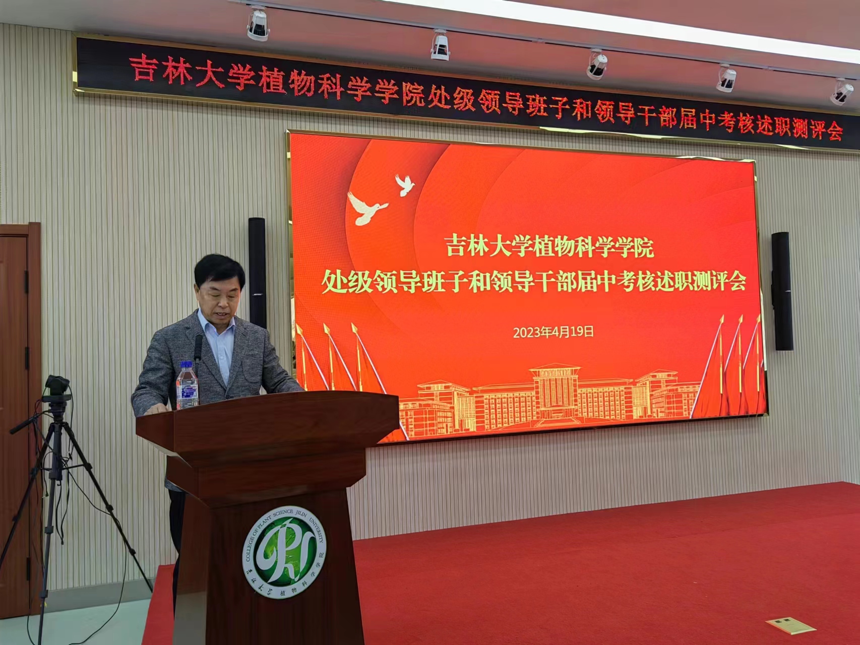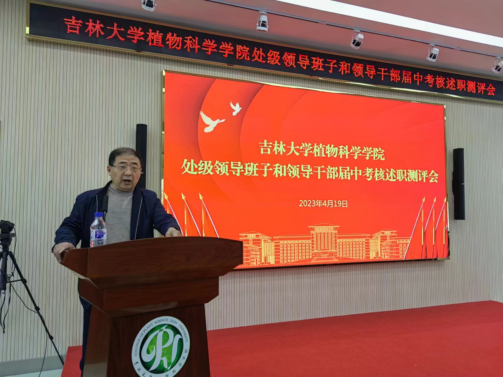 根据《吉林大学处级领导班子和领导干部年度考核工作办法》和学校党委的工作安排,4月19日上午,植物科学学院在学院二楼报告厅召开处级领导班子和领导干部届中考核述职测评会议,学院全体教职工参加了会议,会议由党委书记于生宗主持。