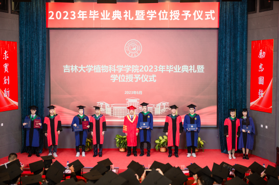 院长都兴林教授宣读了“吉林大学植物科学学院关于授予2023届毕业生学位的决定”,主礼教授都兴林院长、席景会副院长、秦建春副院长、杨振明教授和边鸣镝教授为获得学位的毕业生拨穗正冠并授予学位。