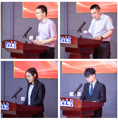 毕业生王正标同学与胡洪露同学分别代表研究生、本科生发表毕业感言,在回忆大学期间的经历的同时,向学院领导与老师表达了最崇高的敬意与最诚挚的谢意。