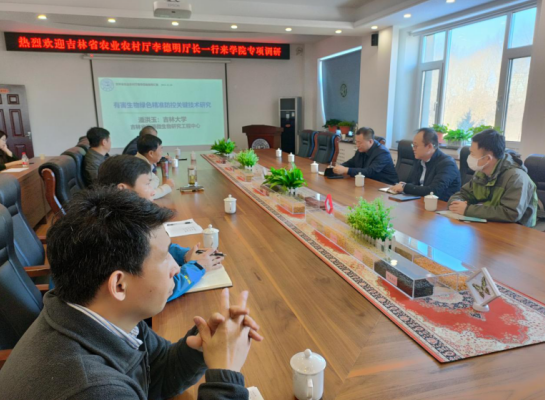 李德明厅长对植物科学学院为国家粮食安全、吉林省经济和社会服务等方面的工作给予充分肯定,就下一步吉林省农业密切关心的西部粮食增产工程、稻蟹工程、农产品加工和规模化经营等四方面进行了指导,并就新技术、新品种等成果转化及科研合作等提出建议。