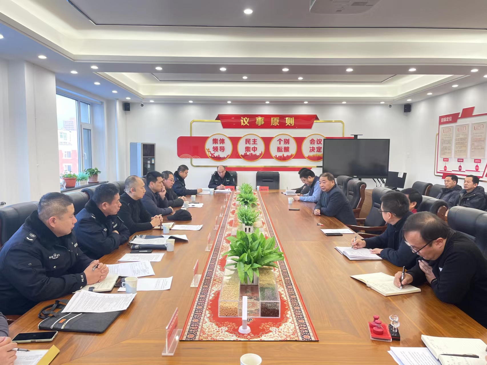 党委书记于生宗对检查组一行表示欢迎,对西区事务办和保卫办的指导表示衷心的感谢。对学院治安综合治理工作于生宗表态,工作组的改进意见学院照单全收,治安综合治理工作是学院发展的坚强基石,是维护好师生切身利益的最具体体现。学院党委将会不断巩固和完善治理成果,总结经验健全制度,加强顶层设计和治理能力,确保各项工作落到实处。