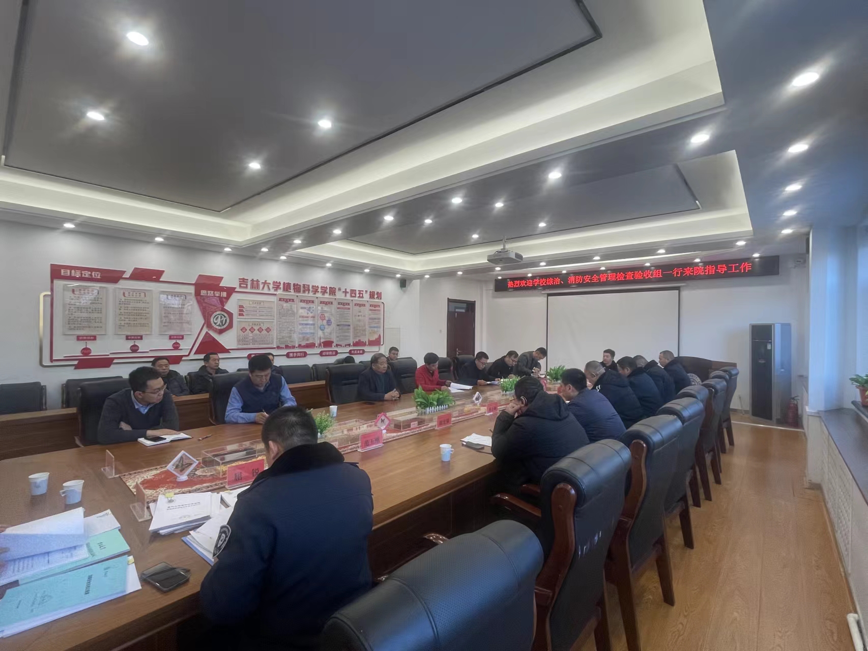 2023年12月20日下午,西区保卫办主任鲁钰锋、西区事务办副主任董志峰以及和平校区后勤服务中心等一行11人,对植物科学学院2023年度治安综合治理、消防管理工作进行了验收。植物科学学院全体班子成员、党委办公室、综合办公室、实验教学中心等部门负责人参加会议。