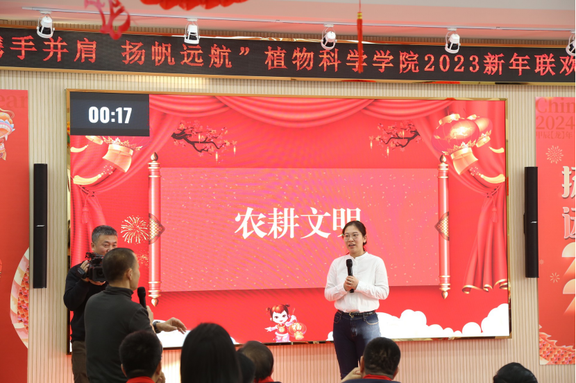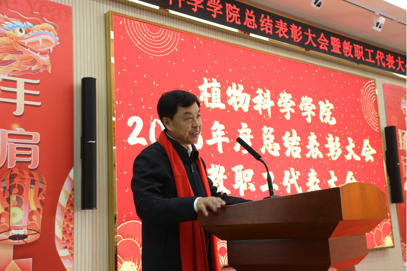 2023年12月28日,植物科学学院在学院二楼报告厅隆重举行2023年总结表彰暨教职工代表大会、“携手并肩 扬帆远航”新年联欢会,学院领导班子成员、全体教职工及学生代表参加。会议由学院行政副院长刘铭主持。