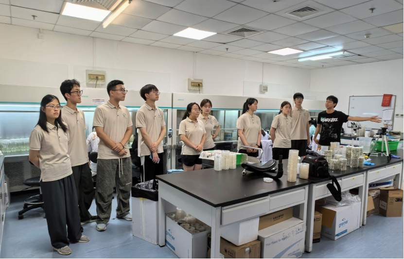 在高彩霞基因编辑研究组李帛树博士的讲解下,研学师生了解了基因编辑相关知识、研究组历史起源、中间的技术支撑与最后的科研成果展示,并参观了植物组织培养室,基因编辑室等,研学师生感受到基因编辑研究组的成果辉煌与他们潜心科研、矢志创新的精神。