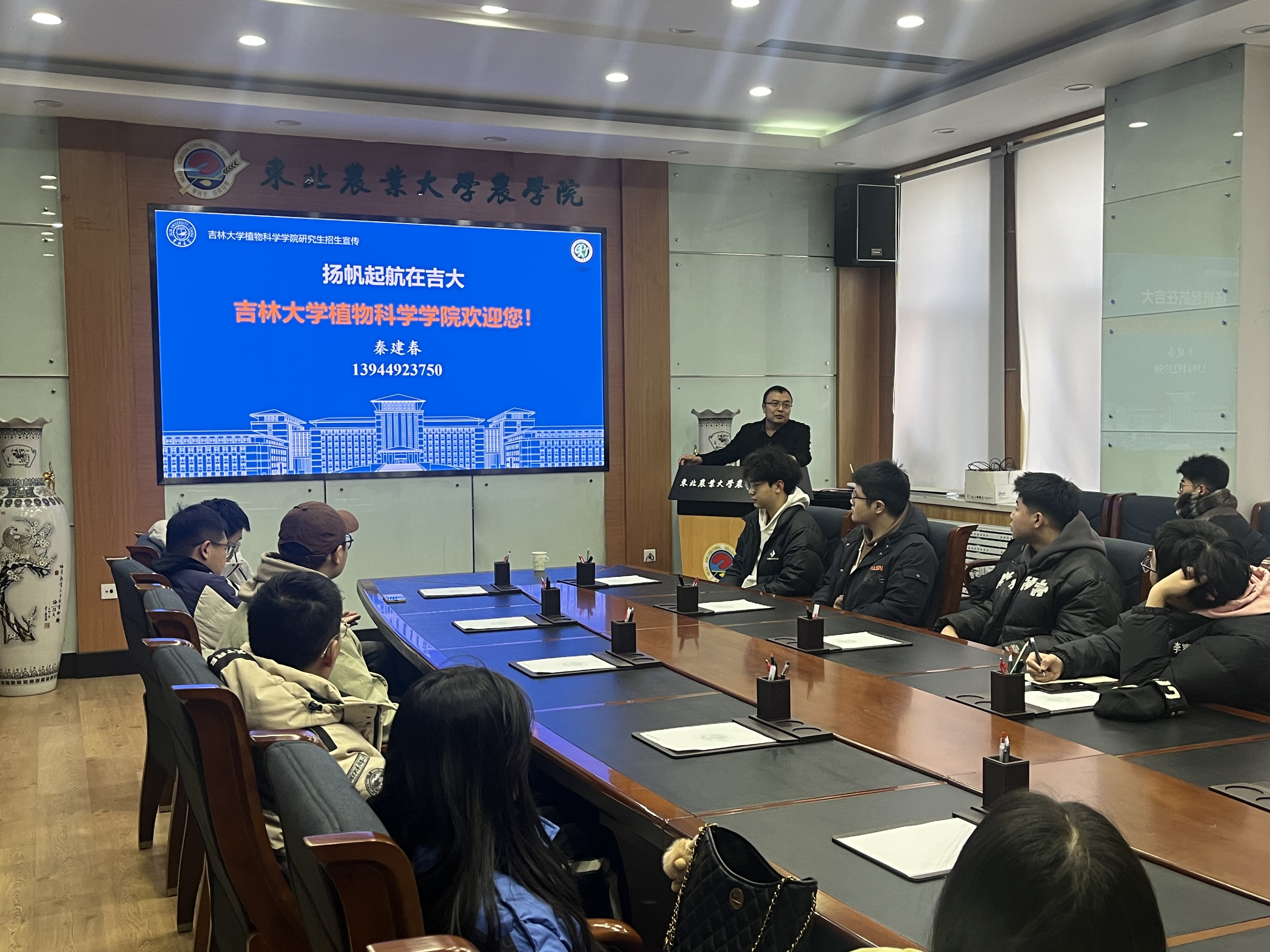 2024年12月20日,宣讲团队前往延边大学农学院。在这里,秦建春教授再次为师生们带来了精彩的宣讲报告。他结合当前农业领域的发展趋势,分析了植物科学相关专业的发展前景,并鼓励有志于投身农业科学研究的青年学子报考吉林大学植物科学学院。延边大学农学院的师生们对宣讲内容给予了高度评价,并期待未来能有更多合作机会。