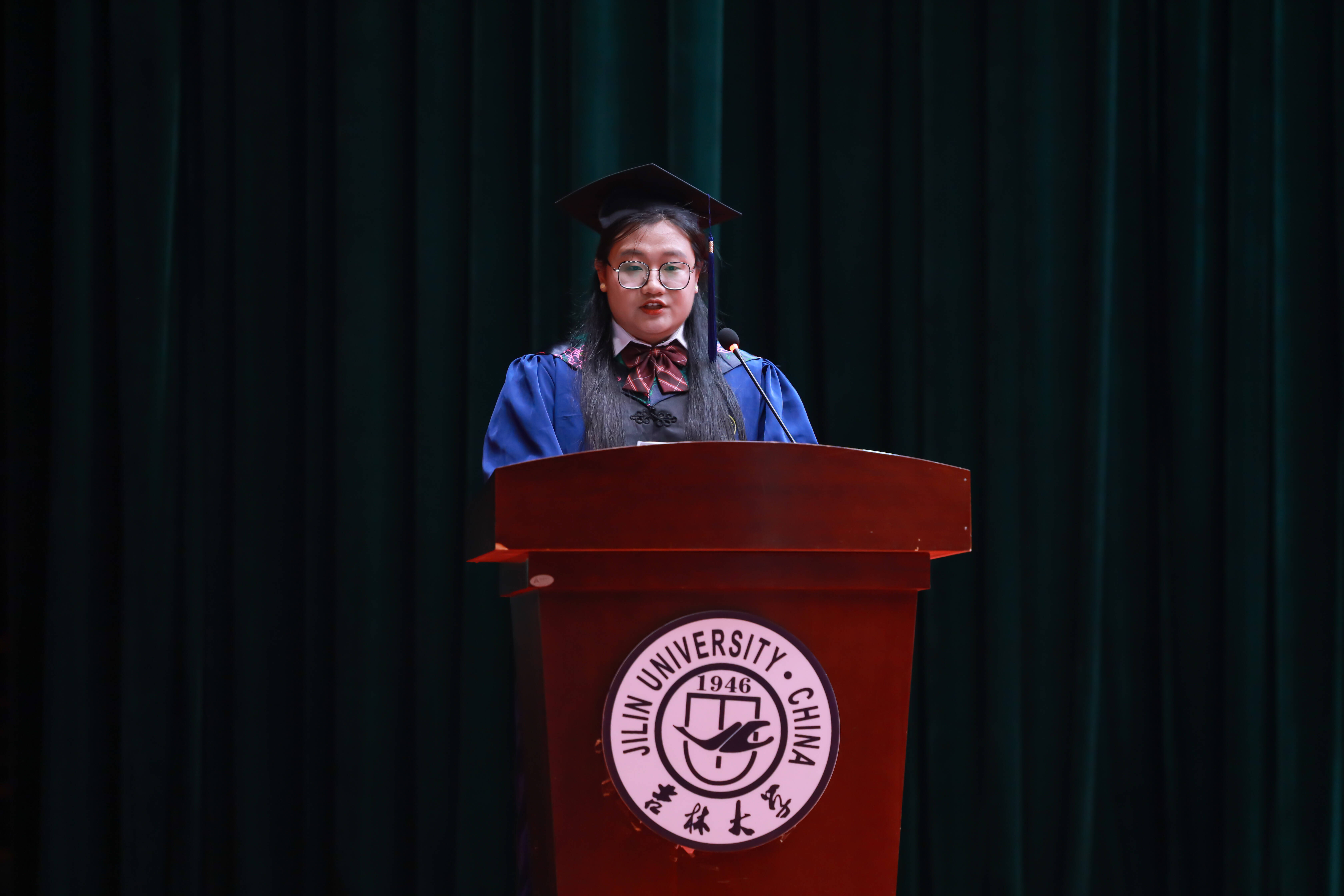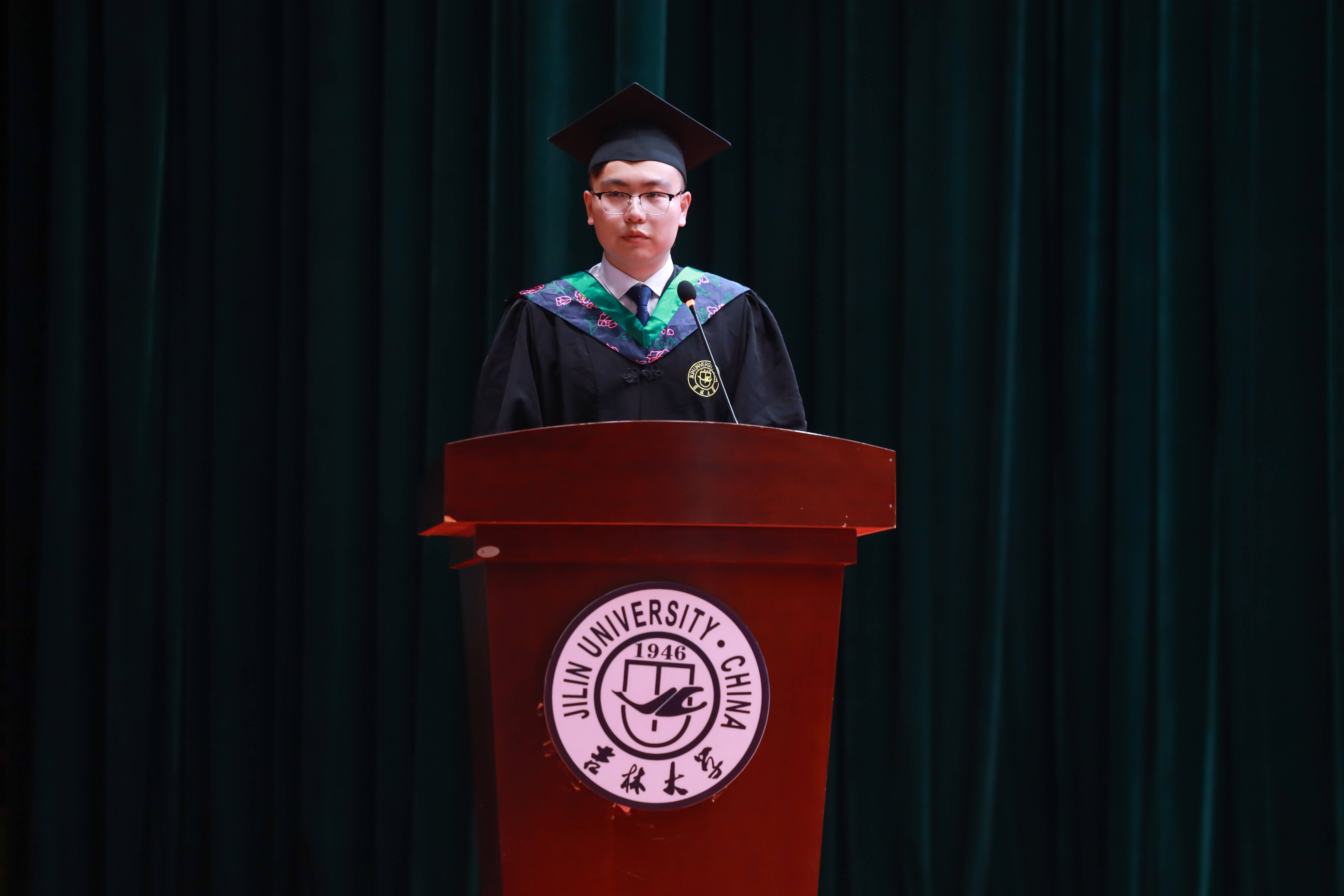 2025届本科毕业生代表,2023年度吉林省优秀大学生、2024年度校十佳大学生入围奖获得者,2021级园艺专业刘雨桐同学发言。他深情回顾在吉大园子里与泥土相伴、和植株对话的科研时光,感恩师长如园丁般的悉心培育;同时以“向下扎根汲取养分,向上生长追逐阳光”寄语同窗,愿同学们在各自领域绽放属于吉大植科人的光彩。