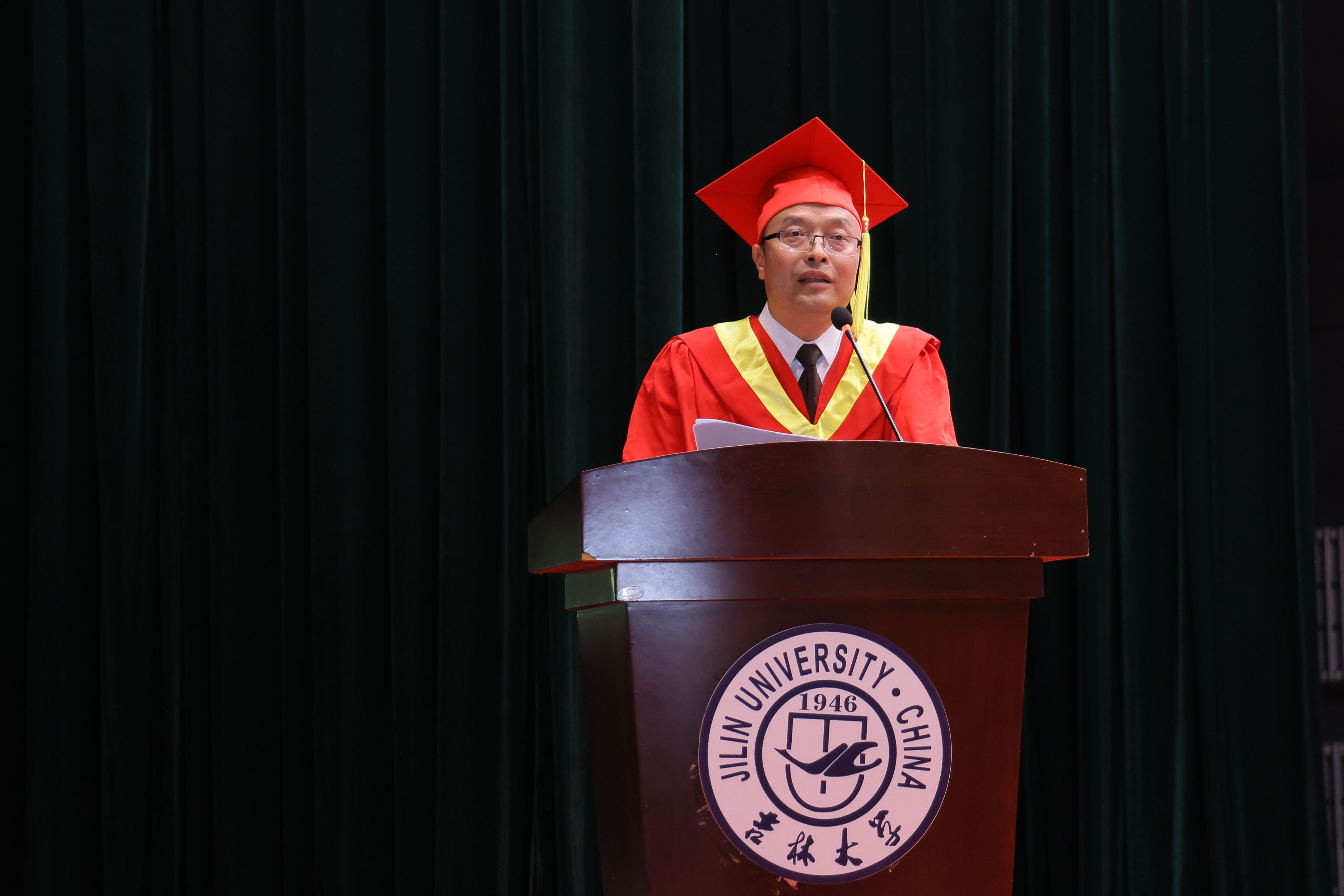 副院长吴涛宣读《吉林大学植物科学学院关于授予2025届本科毕业生学士学位的决定》。