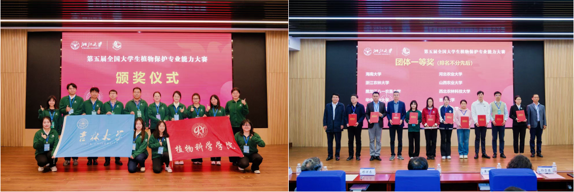 2025年11月7日至9日,第五届全国大学生植物保护专业能力大赛在浙江大学圆满举行。本届大赛汇聚了来自全国47所高校的千余名师生同台竞技,吉林大学植物科学学院积极参赛,由植物保护、园艺、农学三个专业共9名本科生和1名植物保护专业青年教师组成的代表队参赛,凭借出色的专业素养与团队协作,实现了历史性突破,斩获团体一等奖,并在10个单项赛中全部获奖,学生组摘得特等奖1项、一等奖3项、二等奖5项,青年教师赛获得三等奖。