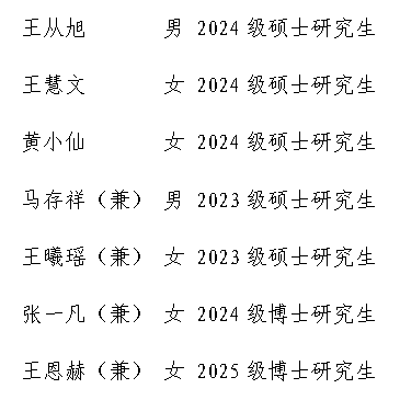 公示期为2025年11月4日至2025年11月7日。欢迎广大师生对以上同学是否符合研究生会主席团成员任用的标准和条件、选拔流程是否合规等向学院科研与研究生办公室反映情况和问题。学院将对反映的情况和问题,认真进行调查核实,并按有关规定做出相应处理。反映情况和问题必须实事求是,应签署或告知真实姓名、专业和联系方式。凡匿名、冒名、假名,且线索不清的举报不予受理,诬告陷害、干扰选拔工作的将严肃查处。