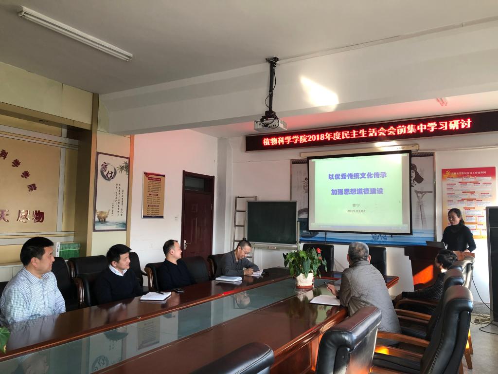 根据中央有关文件精神和学校《关于开好2018年度处级党员领导干部民主生活会的通知》(校党组字〔2019〕9号)要求,结合学院2018年度民主生活会方案,3月7日及3月19日植物科学学院进行了两次党委理论学习中心组学习暨2018年度民主生活会会前专题学习研讨。两次学习均由党委书记张晓楼主持,学院领导班子全体成员参加学习。