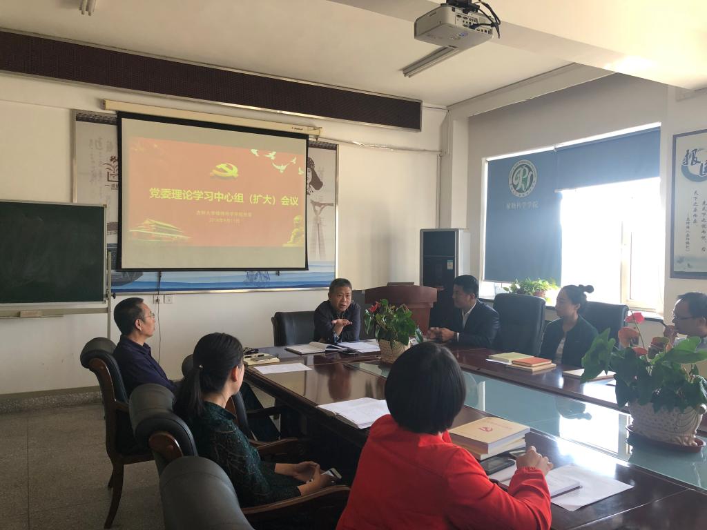 9月11日上午,植物科学学院组织召开党委理论学习中心组(扩大)学习,学院领导,各系、室、中心、基地负责人,各党支部书记参加学习,学习由党委书记张晓楼同志主持。