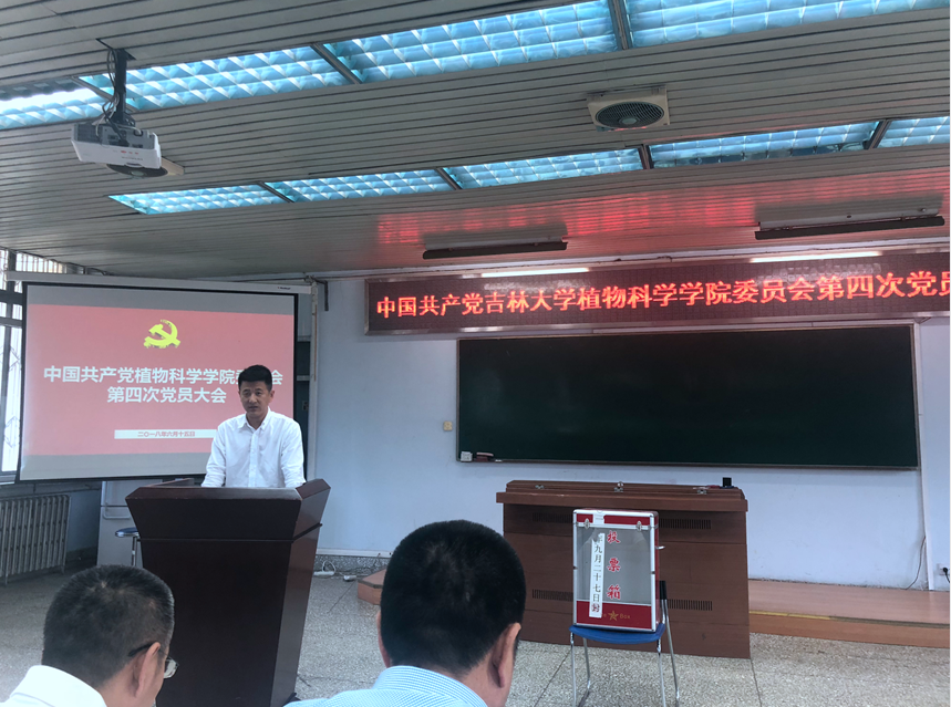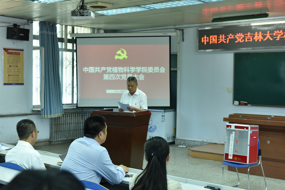 根据学校党委《关于开展院级党组织委员会和基层纪委换届选举工作的通知》有关规定,经学校党委批准,2018年6月15日下午,中国共产党吉林大学植物科学学院委员会第四次党员大会在学院办公楼二楼报告厅隆重召开。全体教师党员和部分学生党员代表参加会议。大会由院长都兴林同志主持。