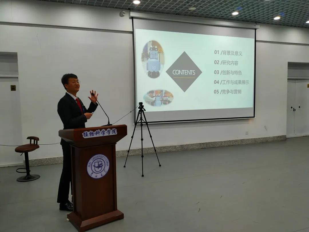 吉林大学植物科学学院院长都兴林教授上台致辞,希望通过本次大赛能够帮助广大青年学子树立创新创业意识、提高创新创业能力,为日后打下坚实的基础。