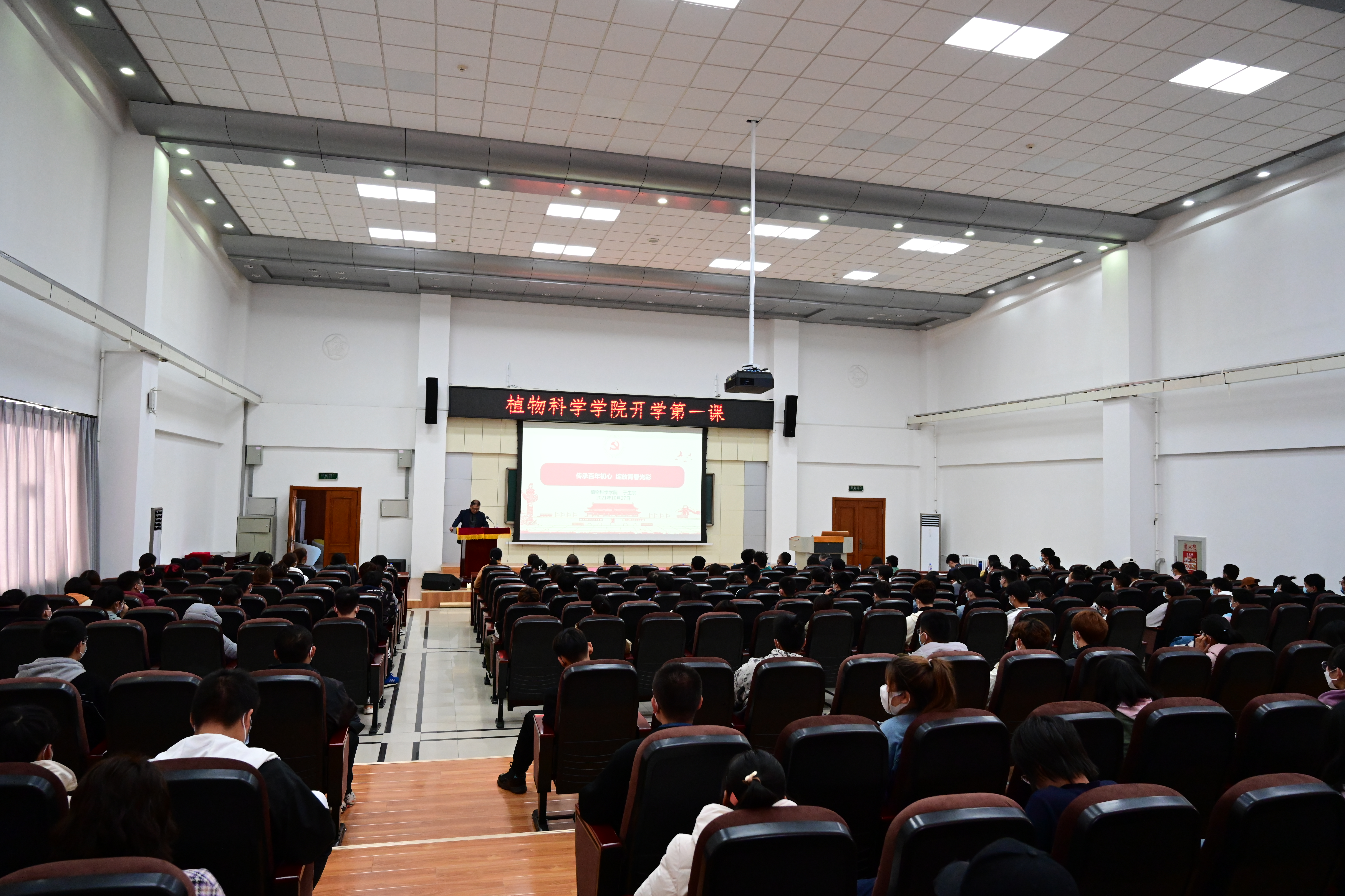 学院党委书记于生宗为新生讲授了开学第一课,他以建党百年为着眼点,回顾了吉林大学及植物科学学院的红色血脉,鼓励新生成为“有新农精神、新农文化、新农科技、新农技能的时代新人。”并用植物科学学院近年涌现的“吉林大学十佳大学生”、“吉林大学自强自立大学生”事例激励同学们肩负时代重任,不负韶华、奋勇争先。于生宗用“两变化”、“三希望”表达了对21级新生的殷切期望,“两变化”即从关注分数到关注学术,从“痴心学习”到“立志报国”。他认为大学中的成长,不仅是年龄增长,更在于开阔眼界,立志高远、抱朴守真;“三希望”即希望同学们找准个人价值新定位,以使命担当为人生定位的出发点;希望同学们的学术生涯迈上新台阶,利用学校、学院的优势进行学术科研、创新创业等工作;希望同学们的人生追求开启新目标,做品德高尚、有情怀、有开阔学科视野的人。最后,于生宗勉励全体新生,要铭记“固本 开源 参天 尽物”的院训,践行刻苦、严谨、求实、创新的学风,在大学生活中享受探索人生的快乐与完善自我的充实,担起国家使命、民族复兴的重任。