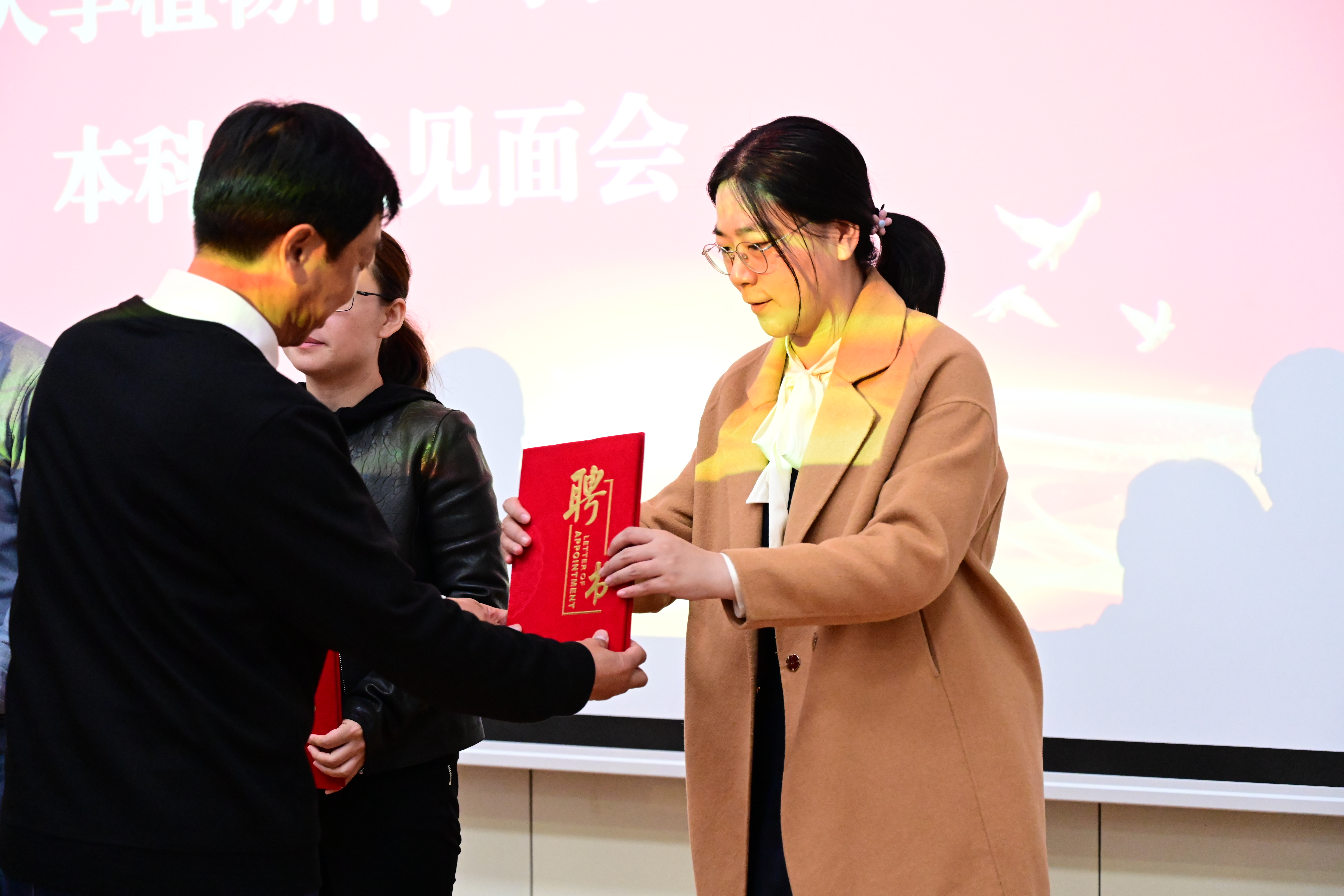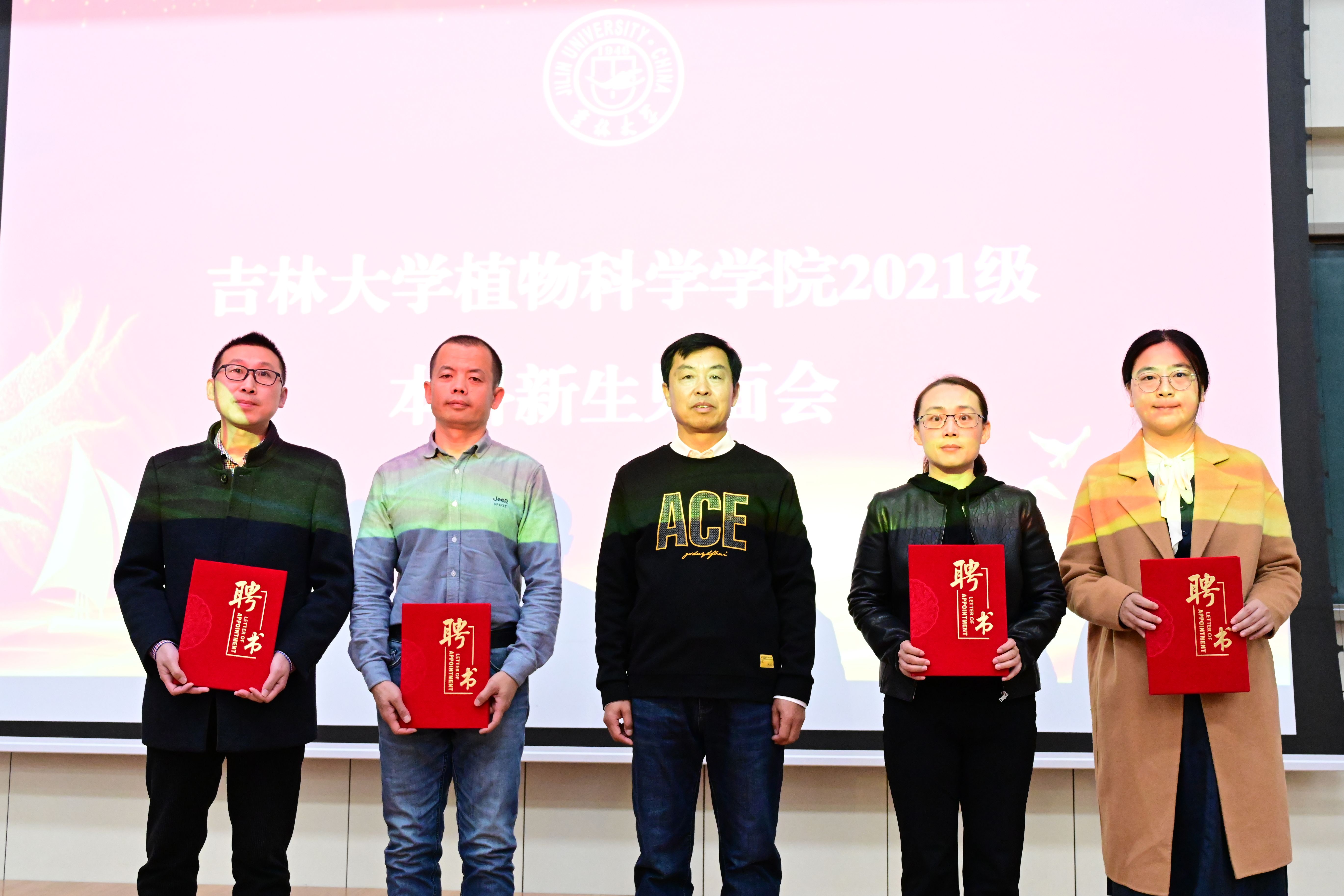 随后,开展了新生班主任聘任仪式,院长都兴林为2021级新生班主任颁发聘书并合影留念。李钊老师代表新生班主任发言。她对同学们的到来表达了热烈的欢迎,同时表示全体班主任愿与同学们携手,在未来的前进道路上赓续植物科学学院的奋斗精神,绘就辉煌新篇章。相信新生们一定能够锐意进取,在老师们的引导下日臻优秀,树立家国情怀,严于律己,持之以恒,成为国家的栋梁。