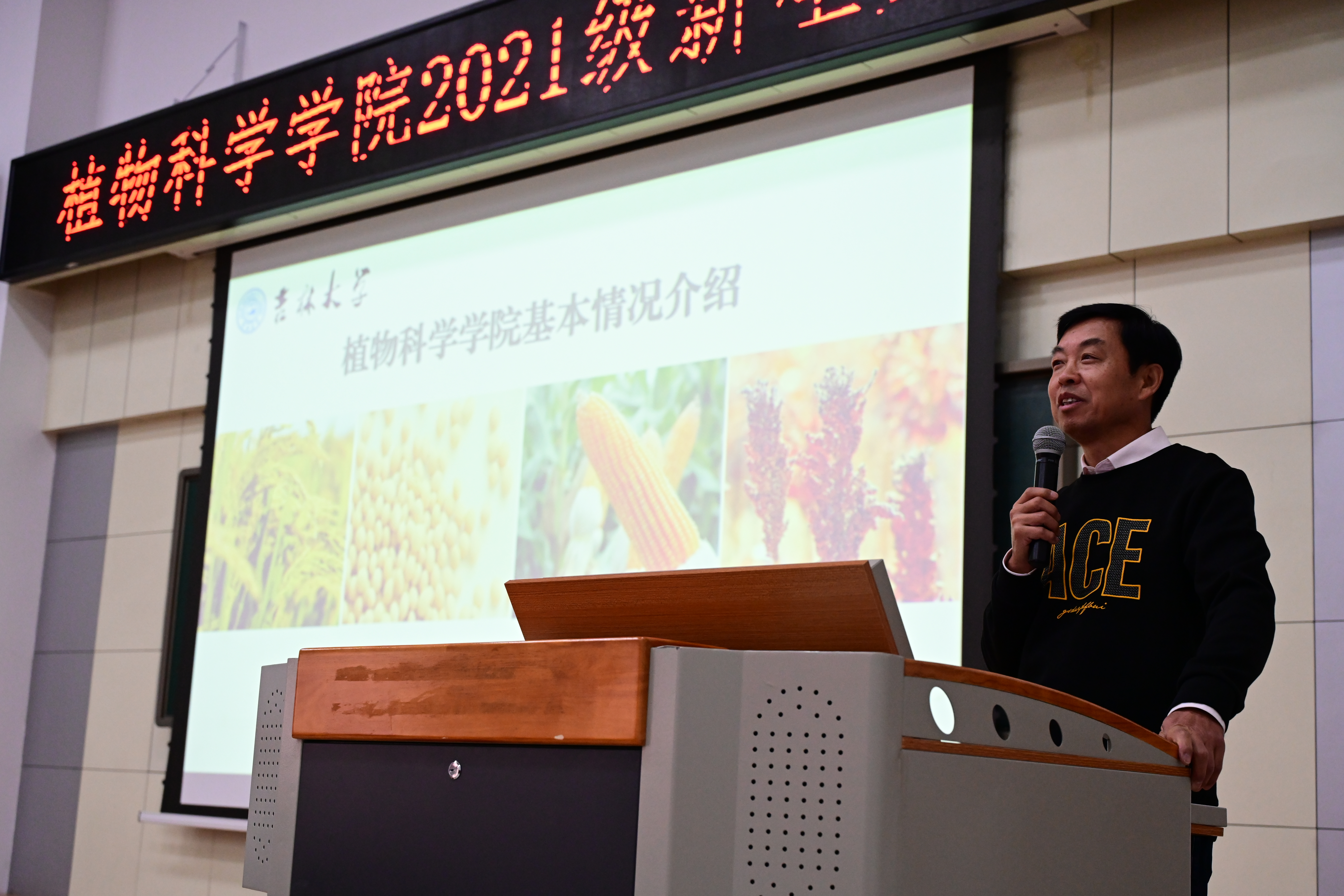 院长都兴林教授就学院基本情况展开介绍,阐述了学院发展的历程和取得的成绩,展望了未来发展前景,表达了对同学们的殷切期望,提出新一届“植科人”要能够脚踏实地孜孜以求,认真度过大学四年学习生活,并在未来向新农科发展的更高目标处迈进。要继往开来,与建校七十五周年的吉大同心,与绵延数千年的农学同向,秉持求实创新的火炬,点亮励志图强的灯塔,不懈奋斗,继承和发扬植科精神,追求梦想,无悔青春。