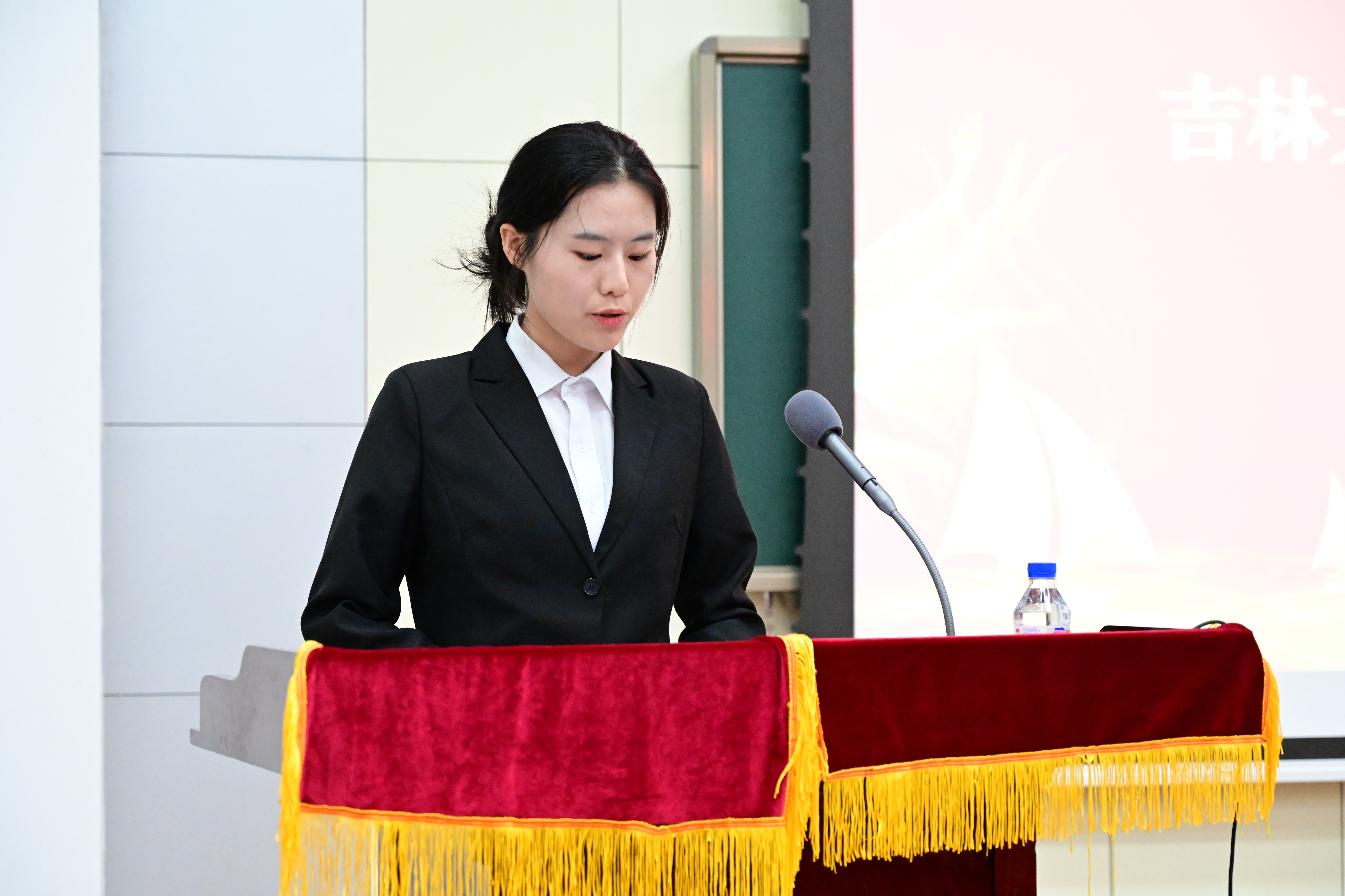 2021级新生郭璞代表学院全体新生发言。她向辛勤付出的学院领导、老师、学长和学姐表达了衷心的感谢和由衷的敬意,就新一代植科人应具备的家国情怀,个人素养,精神品质做出展望,倡议2021级新生在吉林大学的这片热土上,同心、同德、同行,展现植科新生承前继后、砥砺前行的信念,日益进取,勇于创新,久久为功,善作善成,扬鞭策马,筑梦吉大。
