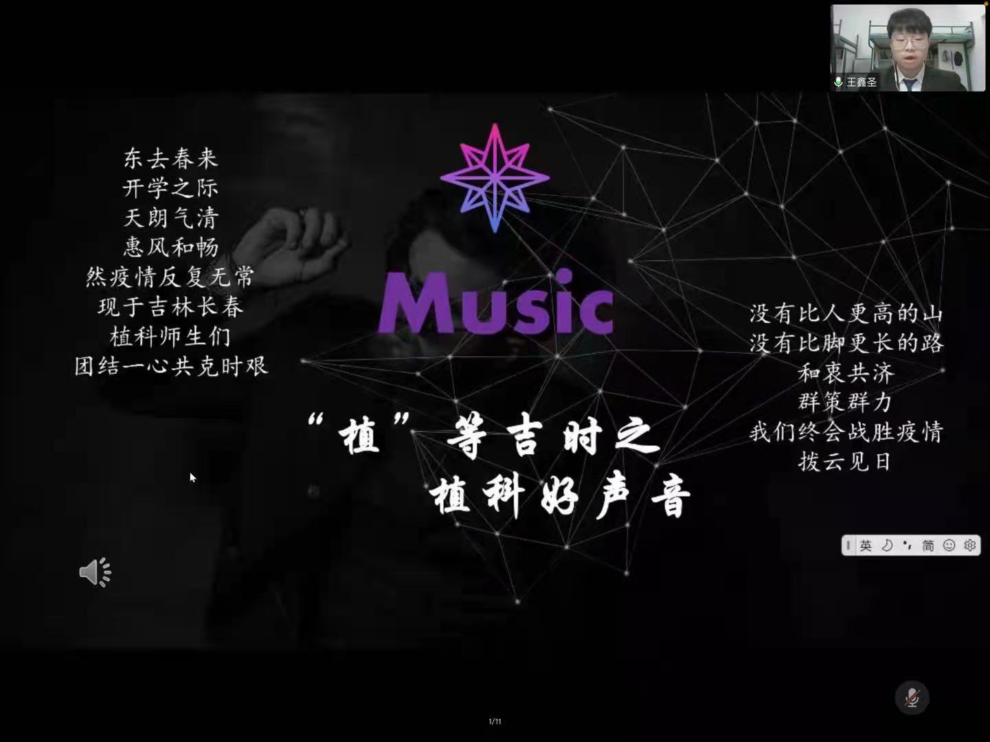 为丰富同学们在寝生活,增添特殊时期的大学生活乐趣,植物科学学院学生会于3月30日晚八点举办“植”等吉时之植科好声音活动。通过同学们的积极参与和精彩献唱,振奋可同学们的战疫精神,在精神层面弥补和丰富了寝室生活。