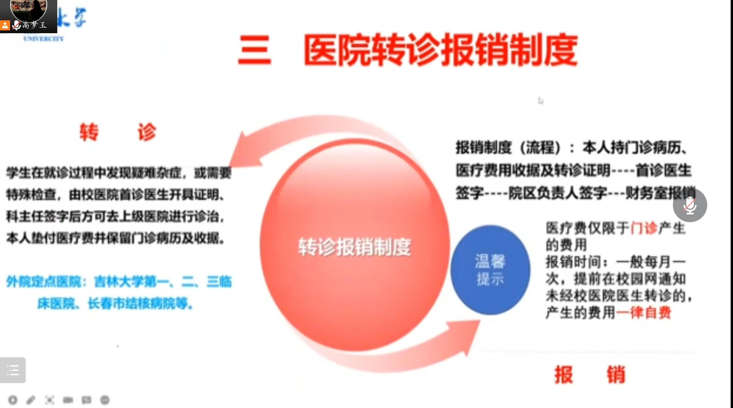 讲座过程中,阙宁老师详细介绍了校医院概况、学生医疗证的发放与使用、医院转诊与报销制度,让同学们充分了解了学校就医、医保报销、传染病预防等方面的相关信息。随后讲述有关大学健康教育课、应急救护培训等课程内容,让同学充分意识到健康教育的重要性。讲座的最后阙宁老师以简洁易懂的语言讲述有关新冠肺炎、艾滋病、结核病、水痘、病毒性肝炎等常见传染病的防治方法,加强有关防范传染病的卫生意识。