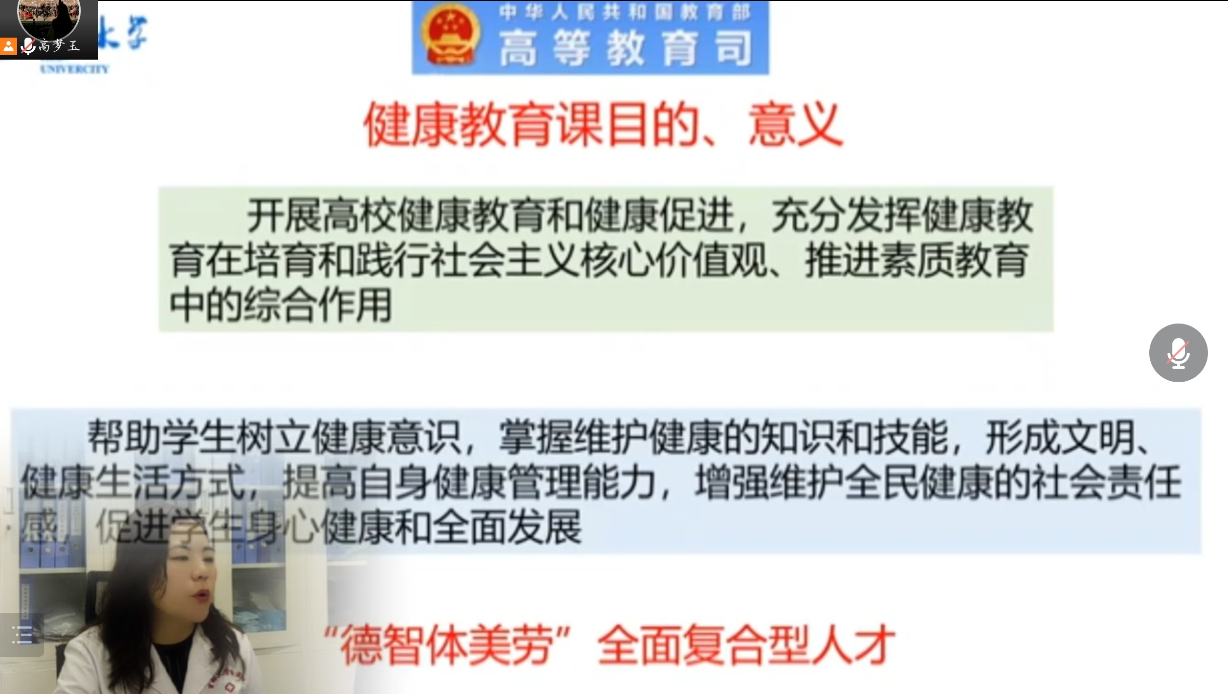 为帮助新生树立健康意识,提高自身健康管理能力,8月31日植物科学学院全体2022级本科生于线上收看由校医院的阙宁老师主讲的卫生健康教育专题讲座。