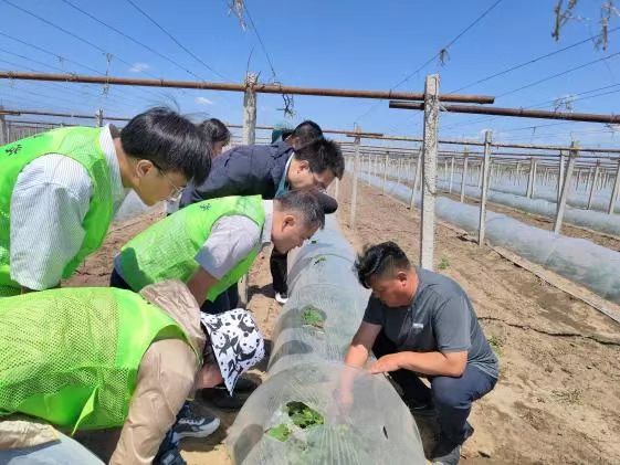 大家驱车2个多小时,深入冬瓜种植基地,查看了解冬瓜苗的长势,了解田间管理情况。当地工作人员为大家详细介绍了冬瓜种植流程及当前冬瓜市场前景。冬瓜适应性强,具有耐寒耐热耐贫瘠的优点,是南菜北种的重要蔬菜品种之一。谢屯村靠近松花江,水源充足,当地的油砂土质尤其适合冬瓜生长。九台区莽卡乡谢屯村通过实施“基地+合作社+农户”战略,立足于生产优势,坚持“因地制宜、科学开发”的原则,建设冬瓜种植基地,发展冬瓜种植产业,并不断引入新品种和种植理念,利用嫁接技术实现作物高产并且提高作物存活率。当地村民通过种植冬瓜获取经济收入,逐步形成农民增收、农业增效、乡村振兴共同发展新格局。目前,该基地种植面积达2000多亩,已获得收益近4000多万元,带动当地50多农户快速致富发展,带动80多人就业,产品远销江苏、上海、北京,出口韩国、日本等地。