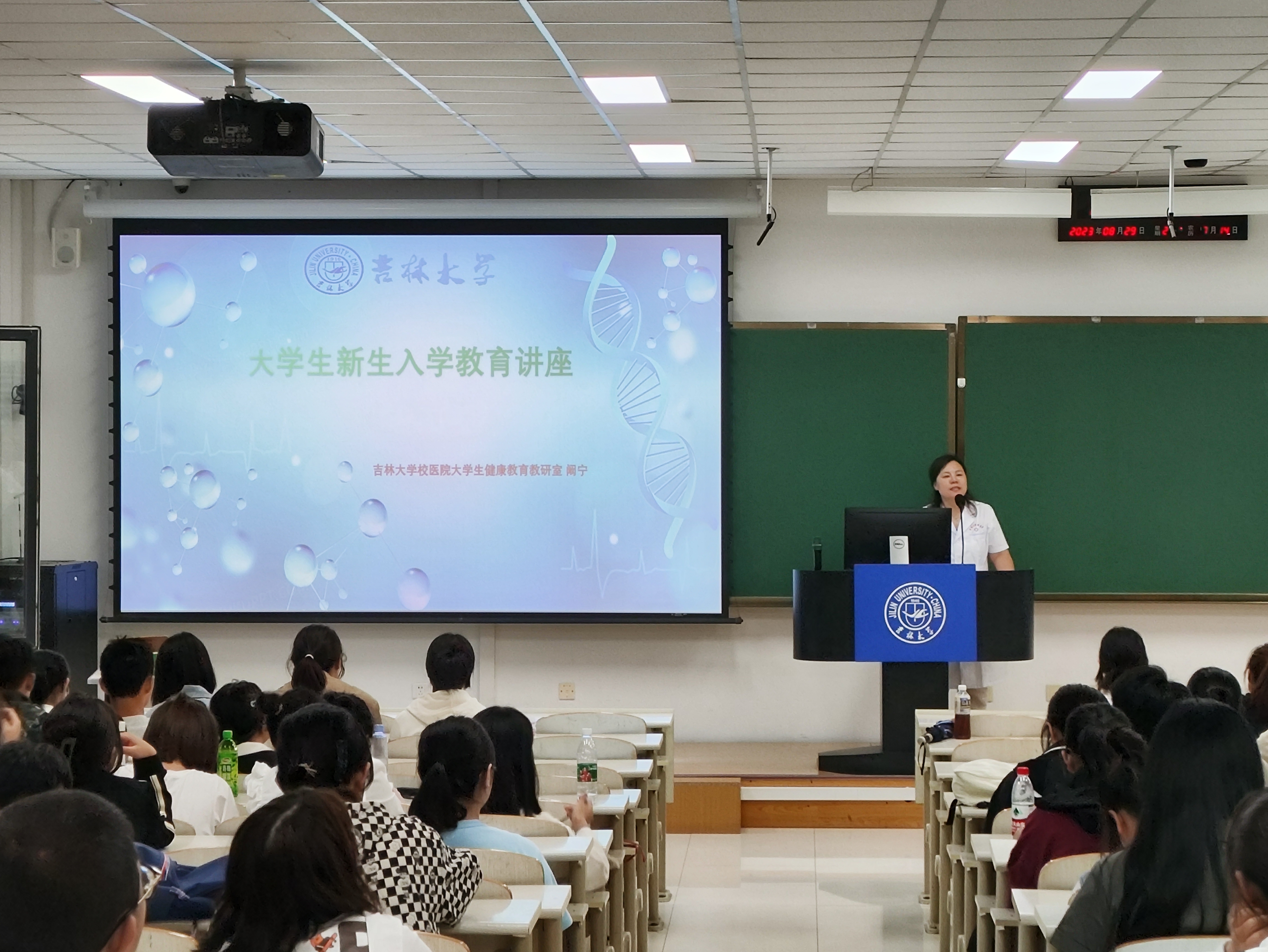 首先,图书馆的石老师提供了吉林大学图书馆的概况、馆藏资源与开放时间的详细介绍,并通过具体实例讲解了图书借阅和查找方法。此外,石老师还向新生展示了图书馆官网的使用方法,包括线上借阅和数字资源利用。接着,保卫处的魏老师进行了大学生安全教育。通过真实案例,他向学生们展示了可能发生的盗窃、诈骗和消防安全风险,并分享了防范不法侵害的方法,还详细讲解了日常安全隐患的排除以及事故中的有效自救技巧。最后,阙宁老师详细介绍了校医院的概况、学生医疗证的发放与使用、医院转诊与报销制度,让新生全面了解校园医疗服务、医保报销和传染病预防等相关信息。此外,她还简明扼要地讲述了新冠、艾滋病、肺结核、水痘、乙肝等常见传染病的防治方法。