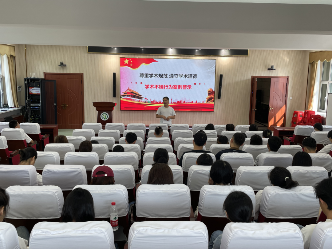 会议在植物科学学院二楼报告厅进行。会议上,邓松老师先后列举了多个某高校博士生导师因论文抄袭被严肃处理、某高校博士学位论文存在严重抄袭问题被撤销博士学位、某高校硕士学位论文和发表学术论文存在侵权问题被撤销硕士学位、取消博士研究生录取资格等案例。通过这些案例,邓松老师语重心长地告诉大家:“无论何时,身处什么样的环境,都不要忘记自己的本心、初心,找对方向,定好目标,正视自身的能力,能做到的就全力去做,做不到的另寻他法或即使放弃也不能弄虚作假,做人要走正道。”